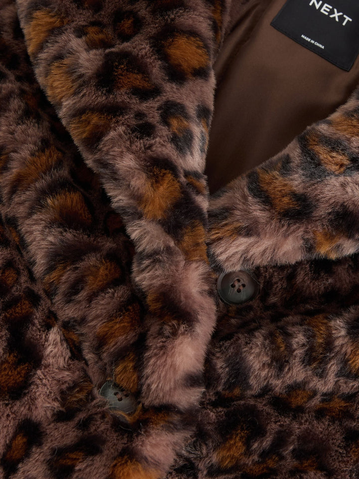 Animal Print Faux Fur Longer Length Coat (3-16yrs)