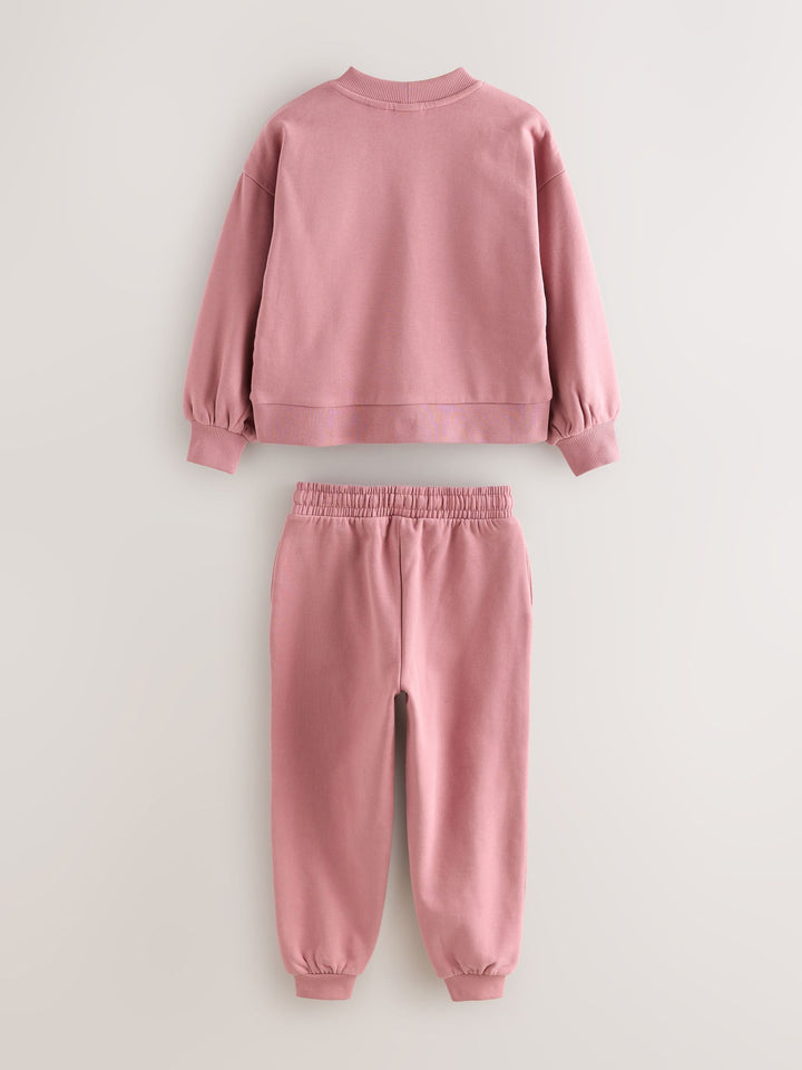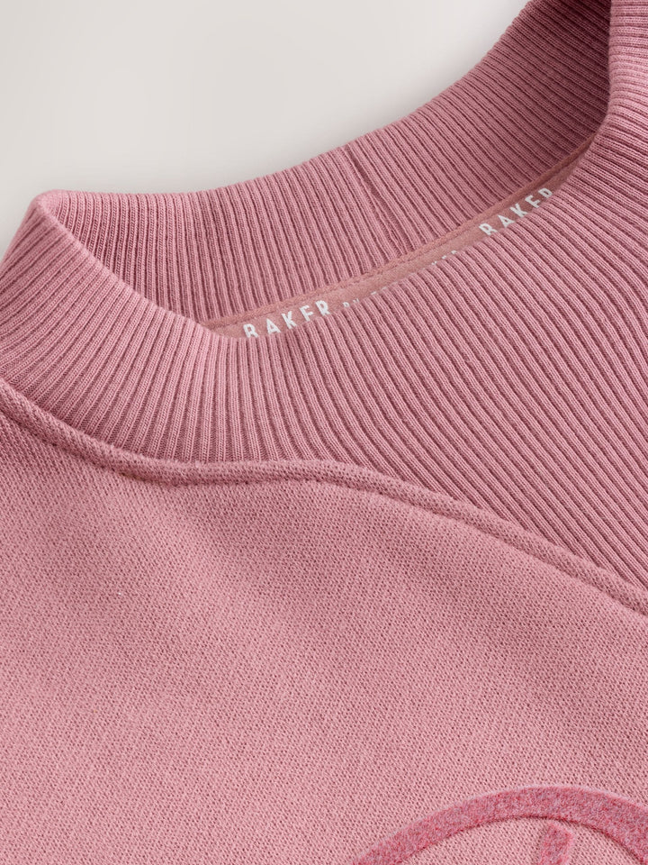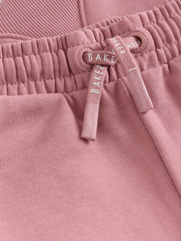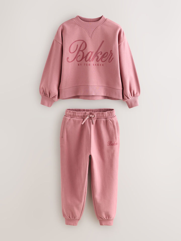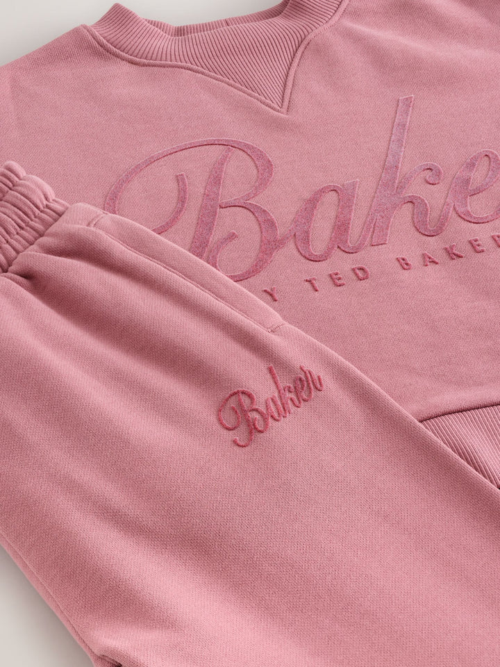 Introducing this essential dusty pink oversized tracksuit set from Baker by Ted Baker, a sophisticated update to everyday loungewear. This co-ord combines premium comfort with high-impact branding. Crafted from a soft, brushed fabric, this crew and jogger set comes with ribbed details on the neck and cuffs and glittered tonal flock branding across the chest and leg of the joggers. The oversized cuffed joggers feature functional pockets and branded gold eyelets and drawcords. This oversized cosy set is a versatile staple for any modern wardrobe. 2 piece set Glittered flock branding Gold branded hardware Sweater and Jogger Main 100% Cotton. Rib 95% Cotton, 5% Elastane. Country of Origin: Bangladesh