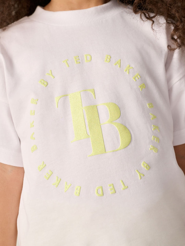 Ideal for warm days, the boxy t-shirt and shorts set from Baker by Ted Baker is bringing laidback style to her summer wardrobe. Crafted from 100% cotton, this set offers a soft and breathable feel that's perfect for lounging or casual outings. The boxy t-shirt features Baker glitter branding to the chest while the matching shorts feature an elasticated waist and textured detailing. 2 piece set Baker glitter branding Textured shorts T-shirt 100% Cotton. Shorts 61% Recycled polyester, 38% Cotton, 1% Elastane. Country of Origin: Pakistan