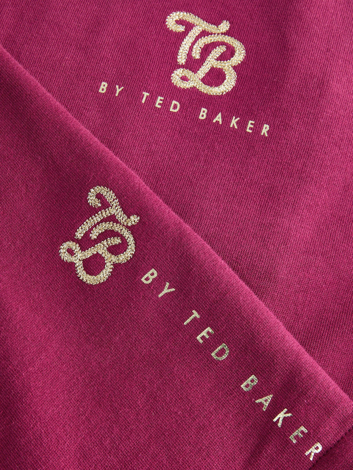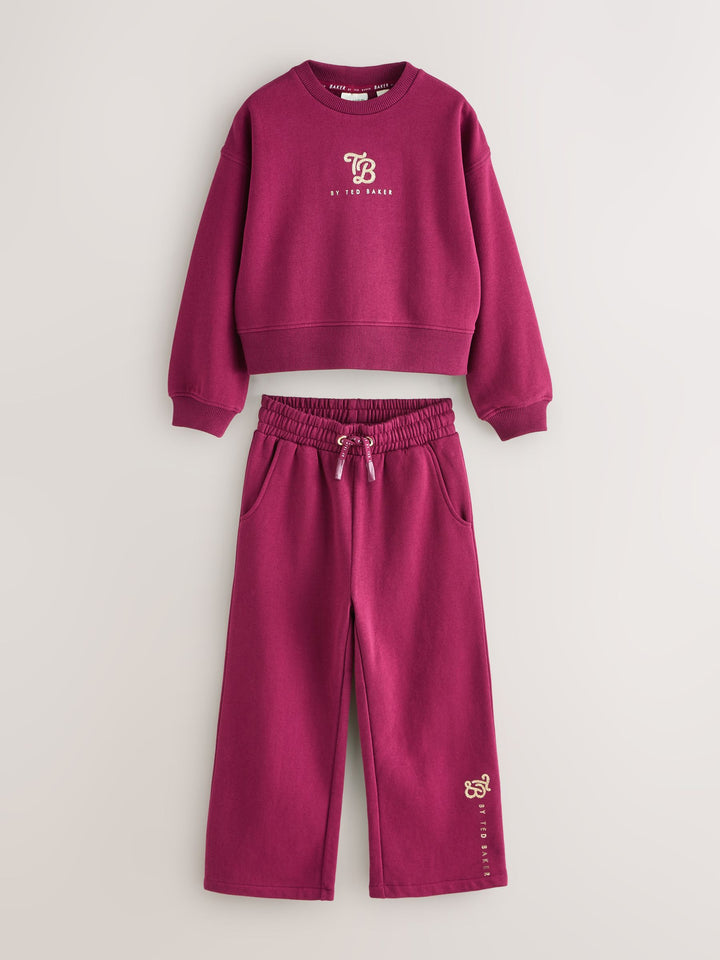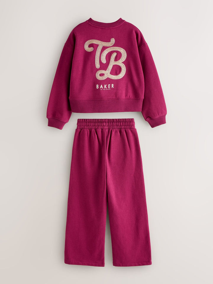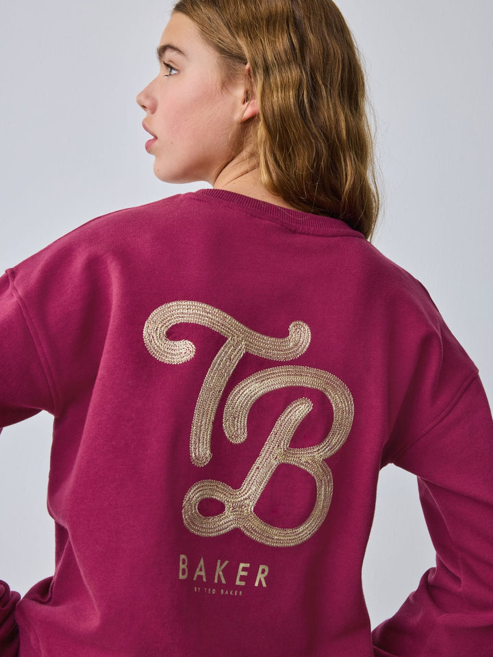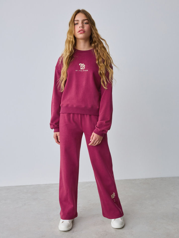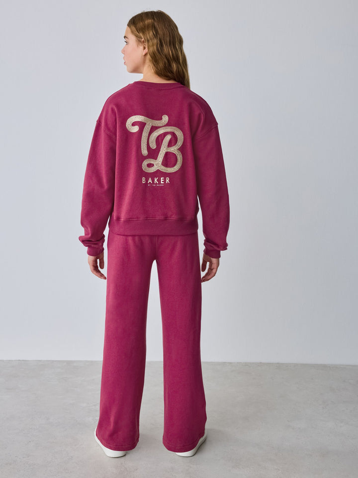 Build her wardrobe essentials with this trendy wide leg 2 piece set from Baker by Ted Baker. The set includes a soft brushback sweat in a boxy crop shape, paired with wide leg joggers. The sweat top features Baker embroidery in gold thread at the front, with an enlarged TB branding at the back. The joggers also feature branding down the leg. The joggers also feature functional Baker branded drawcords with dipped ends and functional coin pockets. This set is perfect for active days out or comfortable evenings at home. Sweater and Jogger 93% Cotton, 7% Recycled polyester. Country of Origin: Pakistan