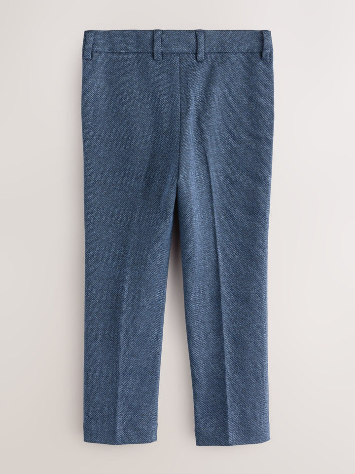 Elevate his formal wardrobe with the Baker by Ted Baker Blue Jersey Suit Trousers. Crafted for comfort and style, these versatile trousers feature a smart branded button fastening, practical side pockets, and classic belt loops. Perfect for any special occasion or smart-casual look, these trousers can be paired with the matching suit jacket, sold separately, to complete the look. Branded button fastening Belt loops Matching jacket available 84% Polyester, 15% Viscose, 1% Elastane. Country of Origin: China
