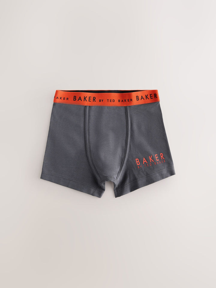Give his everyday essentials a stylish upgrade with the Baker by Ted Baker Boys Boxers 5 Pack. Crafted from a comfortable cotton-rich blend, these boxers are designed for all-day comfort and breathability. Each pair features a distinctive Baker branded elastic waistband, adding designer flair to his underwear drawer. This convenient 5-pack ensures he's always got a fresh pair ready, combining practical comfort with Ted Baker's signature style. 5 pack Cotton rich Baker branded waistband Boxers Jet Black, Boxers Ocean Floor, Boxers Blackened Pearl and Boxers Galaxy Blue 95% Cotton, 5% Elastane. Boxers Grey Marl 85% Cotton, 10% Viscose, 5% Elastane. Country of Origin: Bangladesh