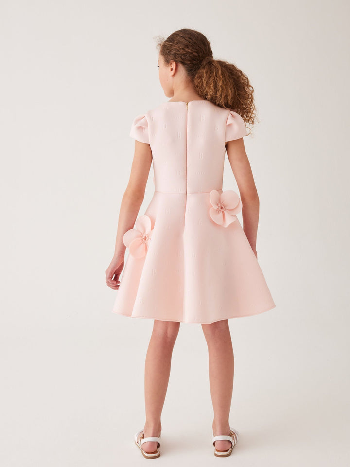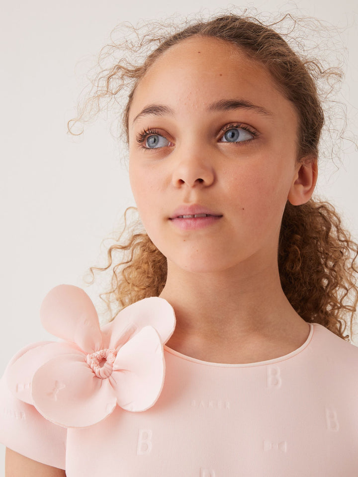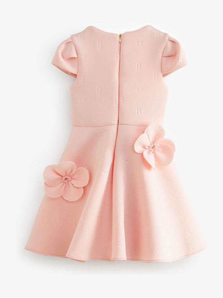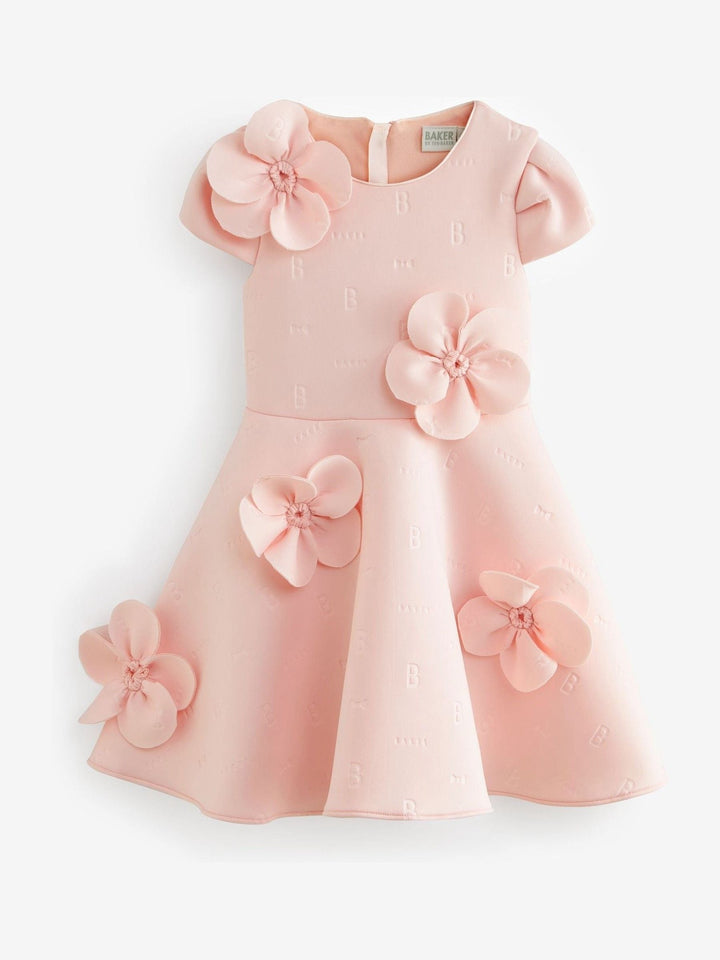Step into sophistication with this elegant embossed corsage dress from Baker by Ted Baker. This dress features stunning corsage details placed around the dress, and iconic embossed Bakr branding on a soft scuba fabric.The sculpted scuba fabric gives it a flattering silhouette, while the 3D corsages add a luxury look, making this dress ideal for any occasion. Completed with a pale gold zip at the back. Main 92% Polyester, 8% Elastane. Bodice Lining 100% Polyester. Country of Origin: Morocco