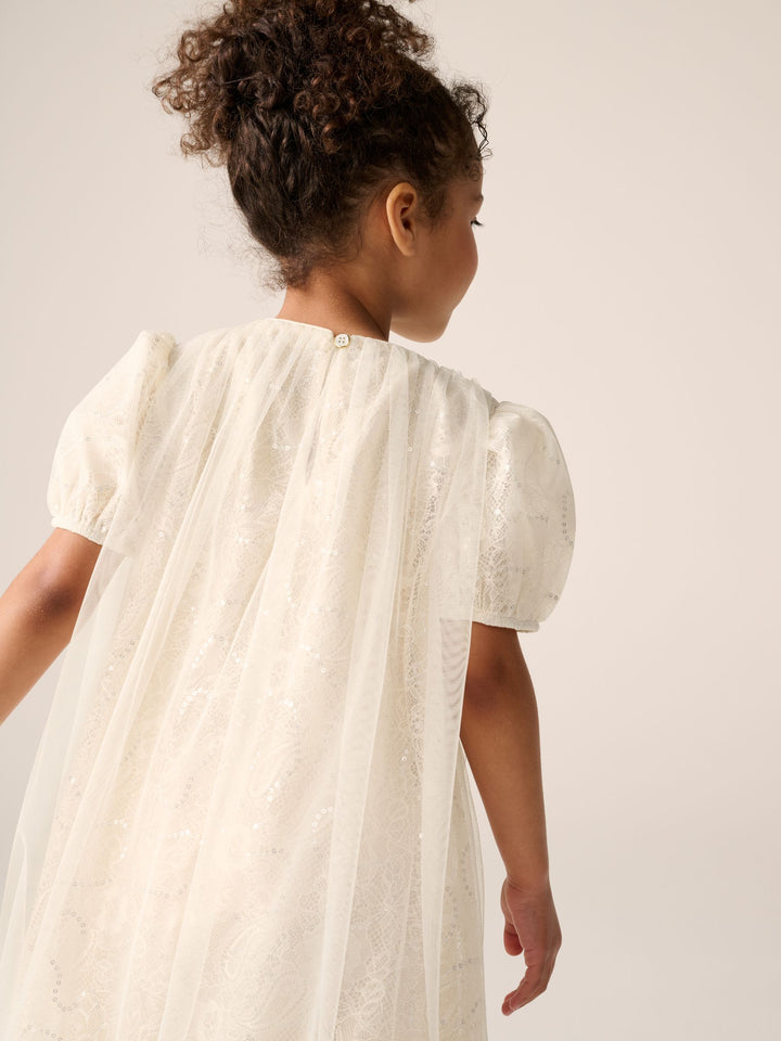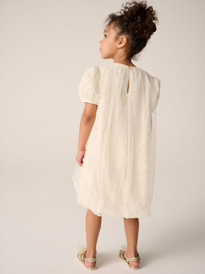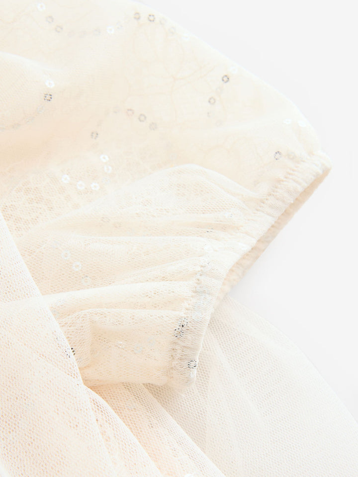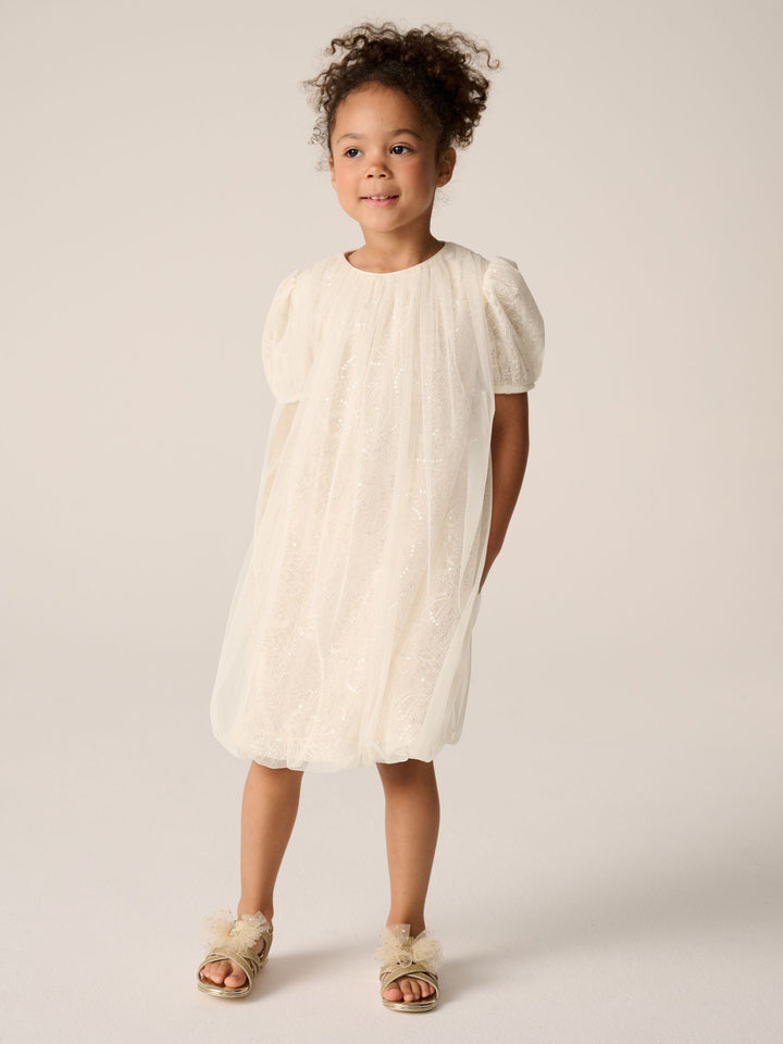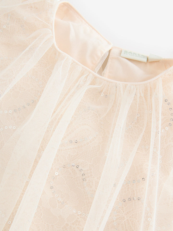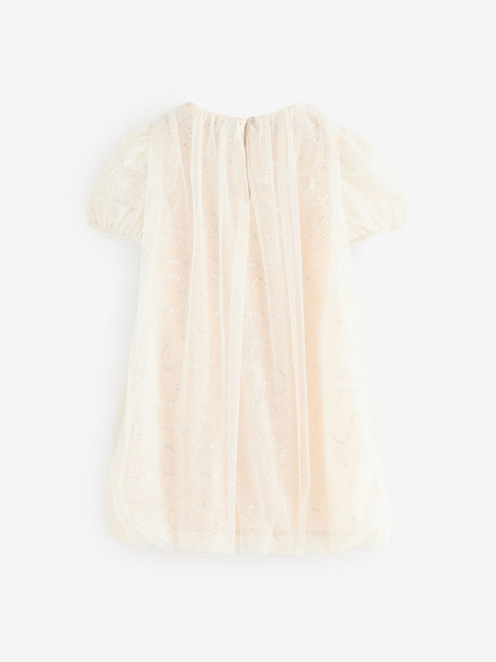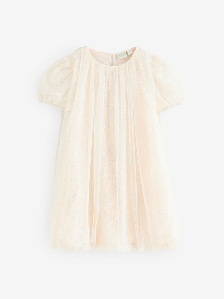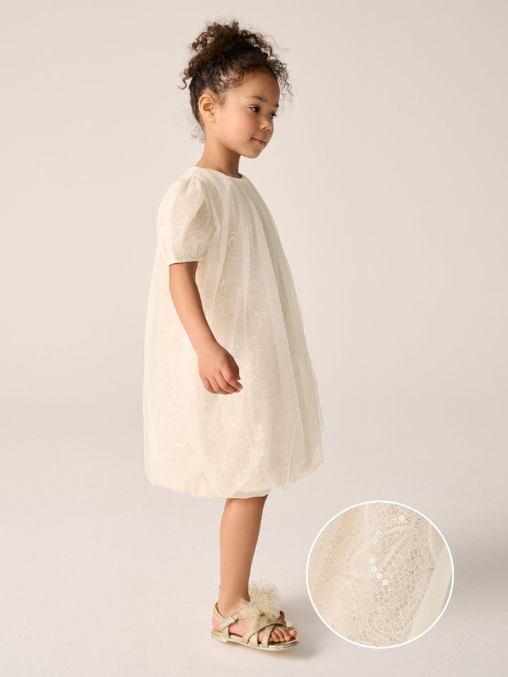 Baker by Ted Baker Cream Sequin Lace Mesh Bubble Hem Dress