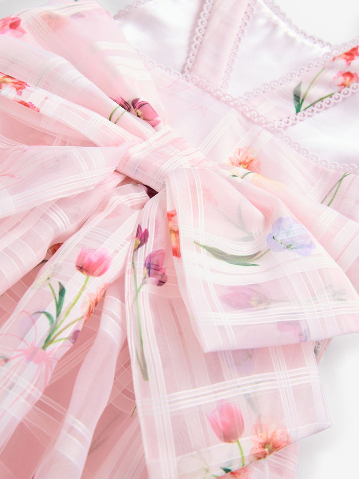 She'll be looking fabulous in florals this season with this burnout floral dress from Baker by Ted Baker. This lovely dress features a unique cross back design covered in iconic Baker florals. Featuring a satin underlay and boasting a show-stopping enlarged bow at the back. This pretty dress is perfect for all formal occasions. Main 100% Polyester. Lining 100% Polyester. Mesh 100% Polyester. Country of Origin: China