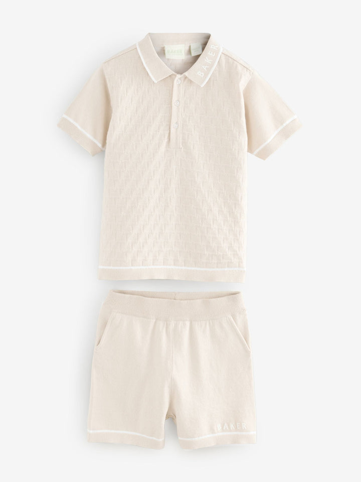 Baker by Ted Baker Knitted Textured Polo Shirt and Shorts Set