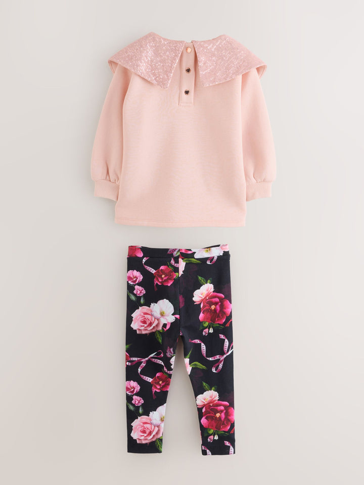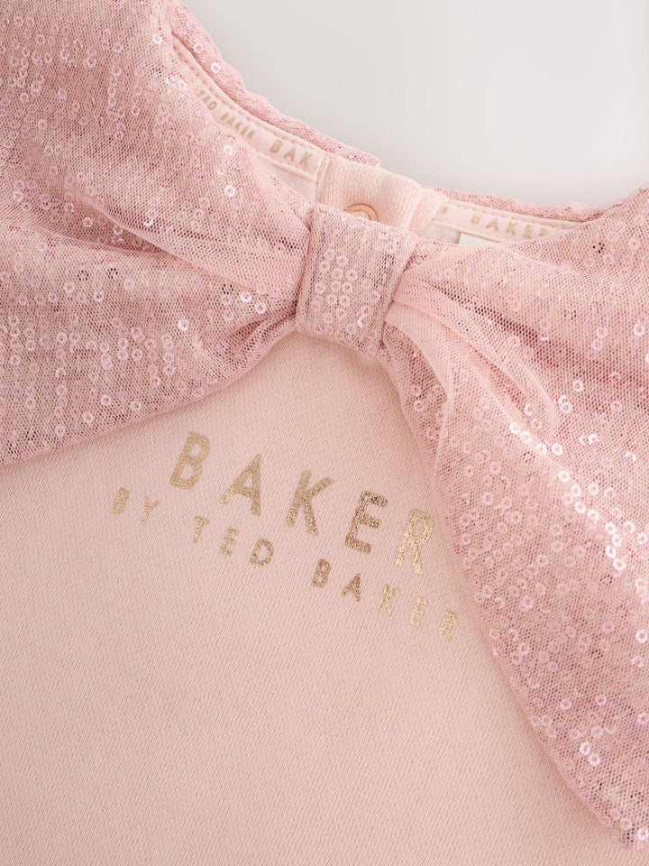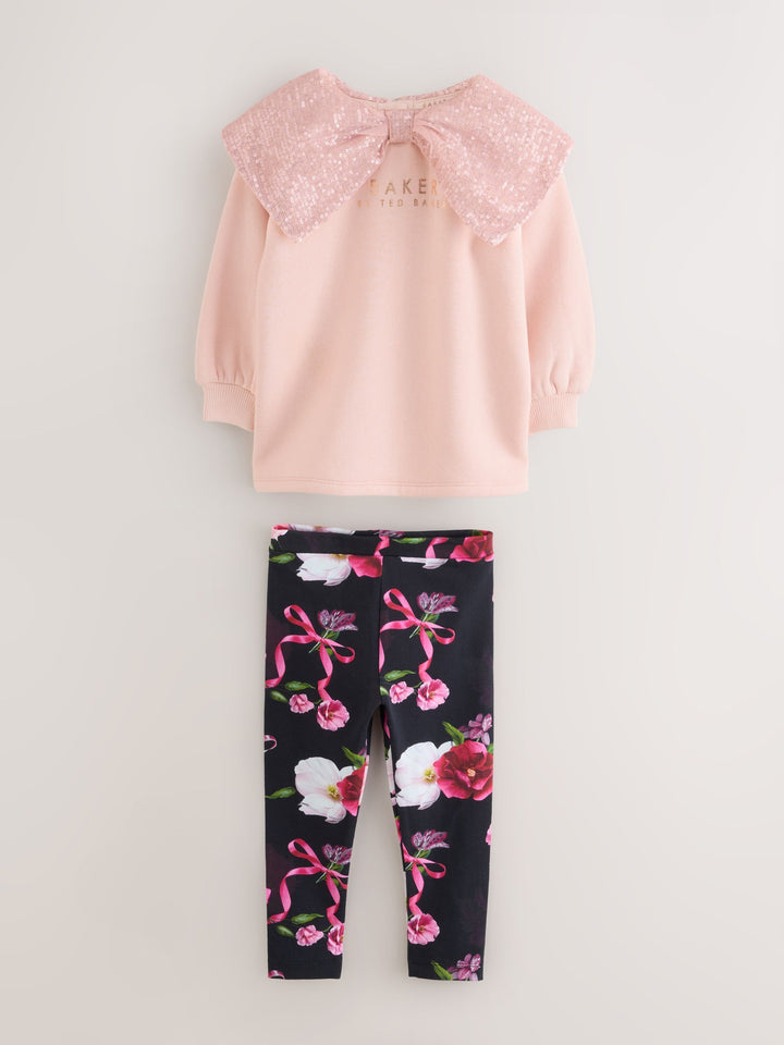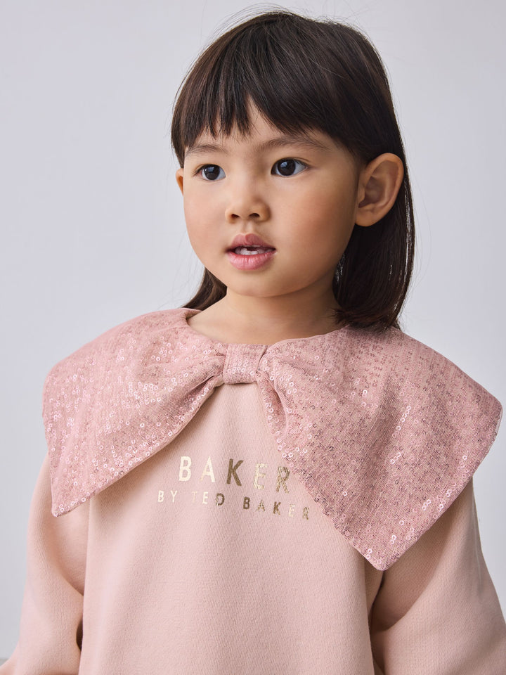 Baker by Ted Baker Pink 2 Piece Sequin Bow Collar Sweat & Leggings Set