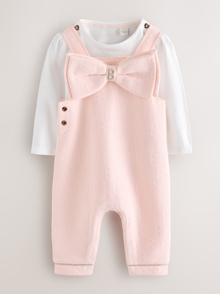 Baker by Ted Baker Pink Jacquard Bow Dungarees & T-Shirt Set