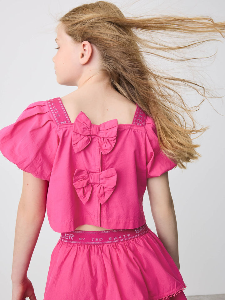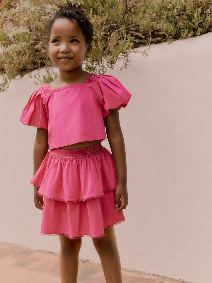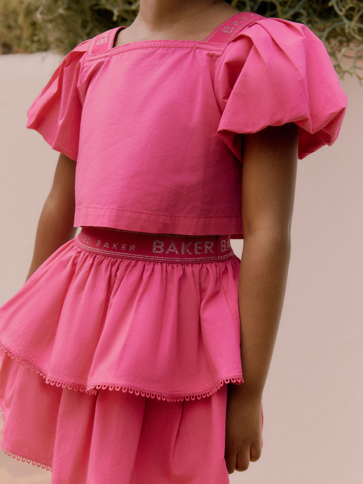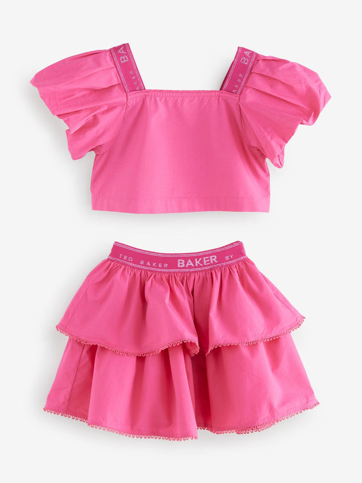 Baker by Ted Baker Pink Woven Puff Sleeve Top and Tier Skirt Set 2 Piece