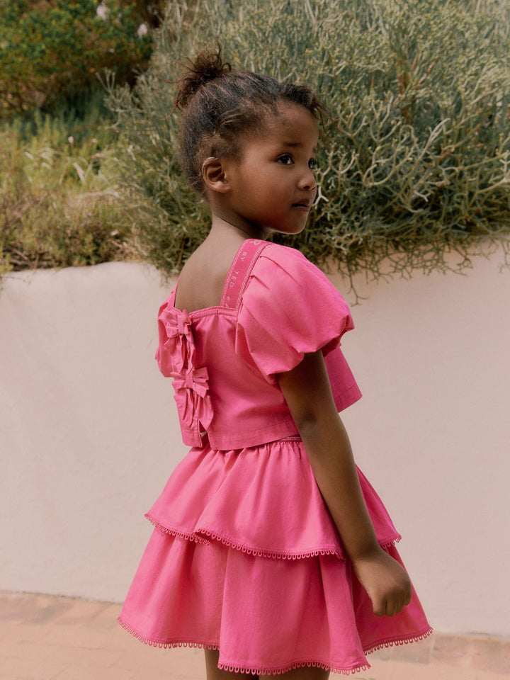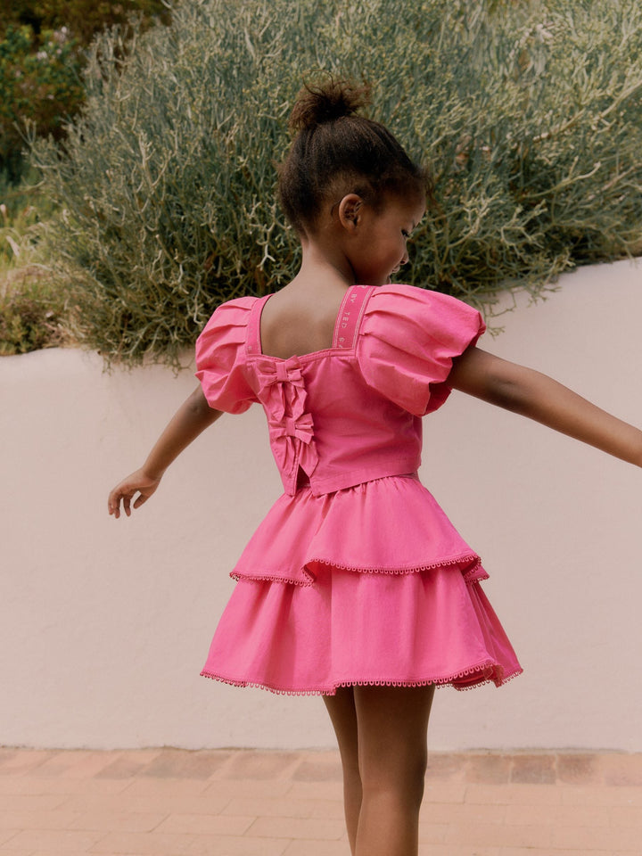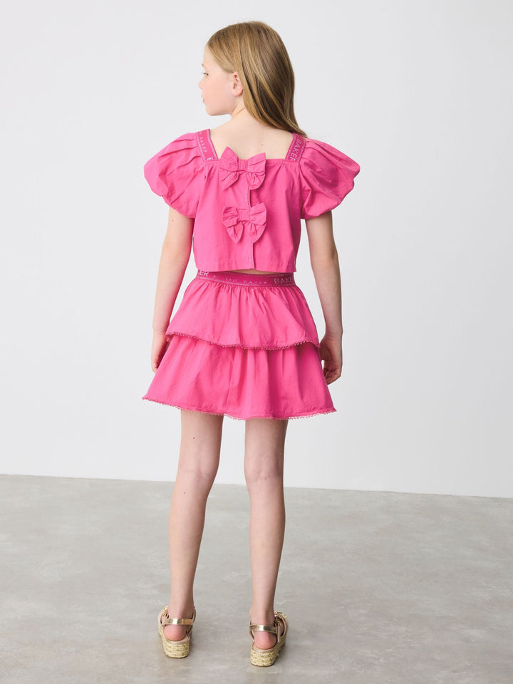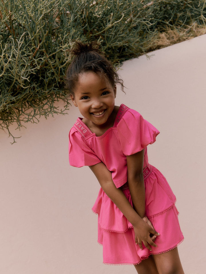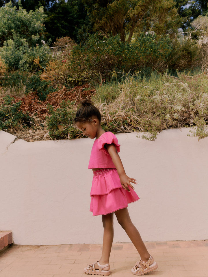 Baker by Ted Baker Pink Woven Puff Sleeve Top and Tier Skirt Set 2 Piece