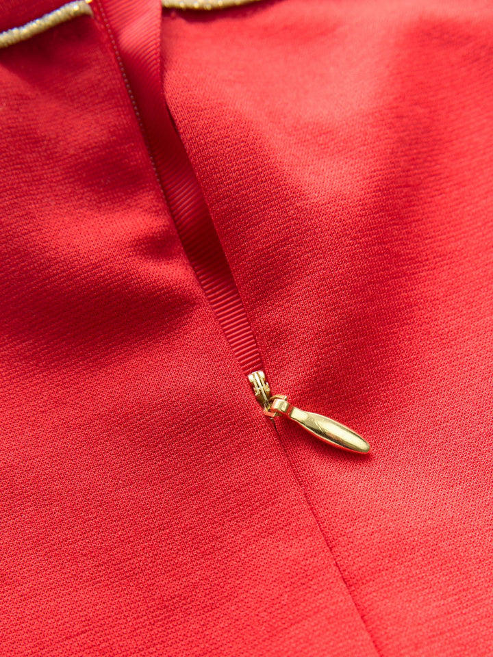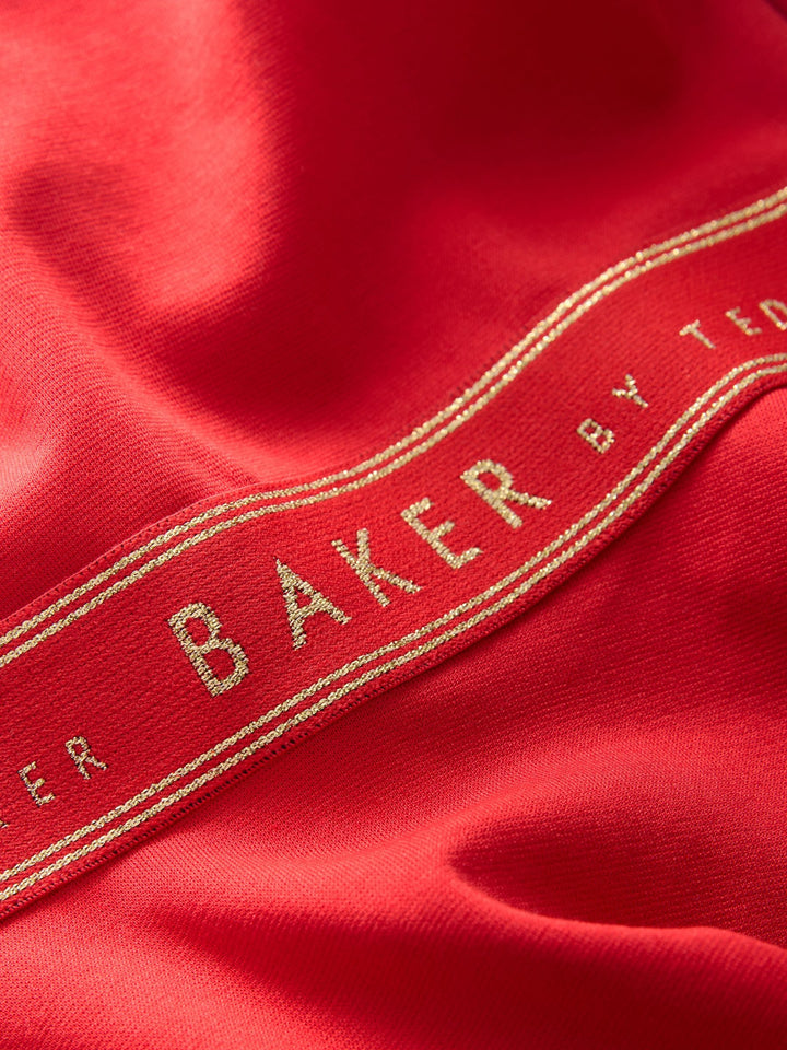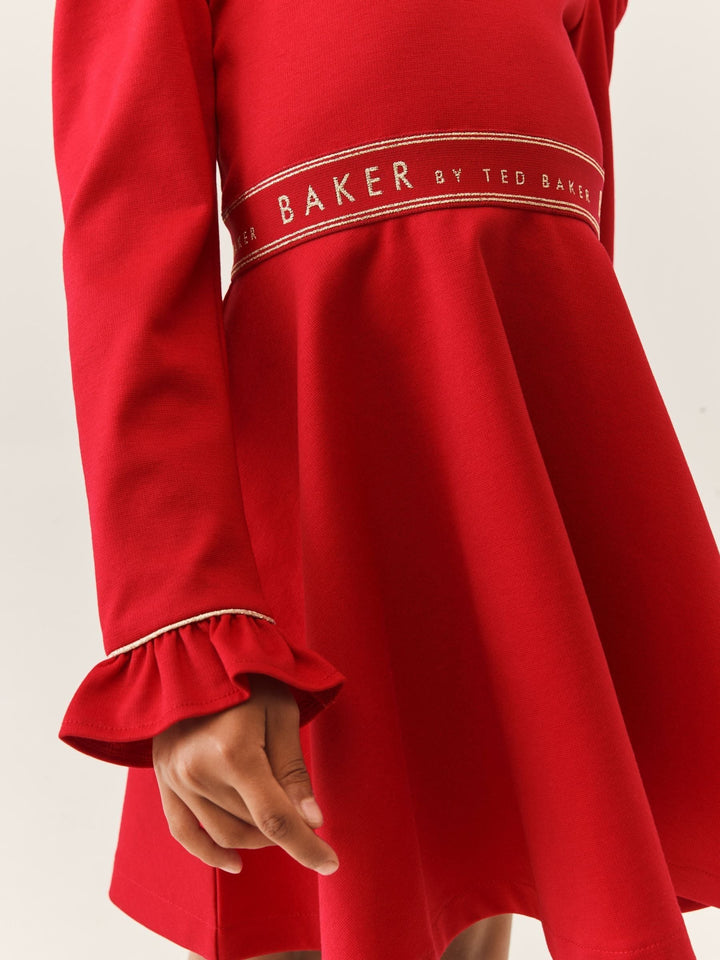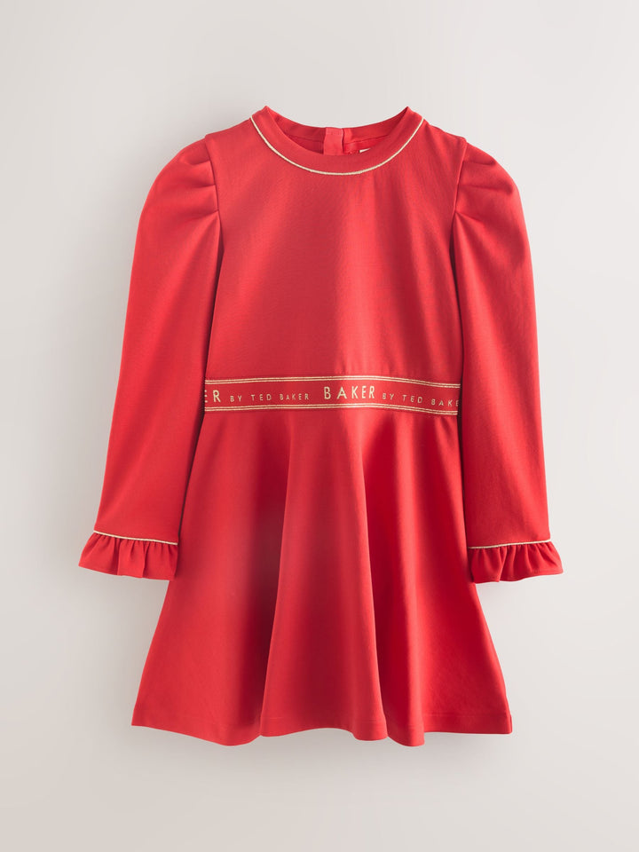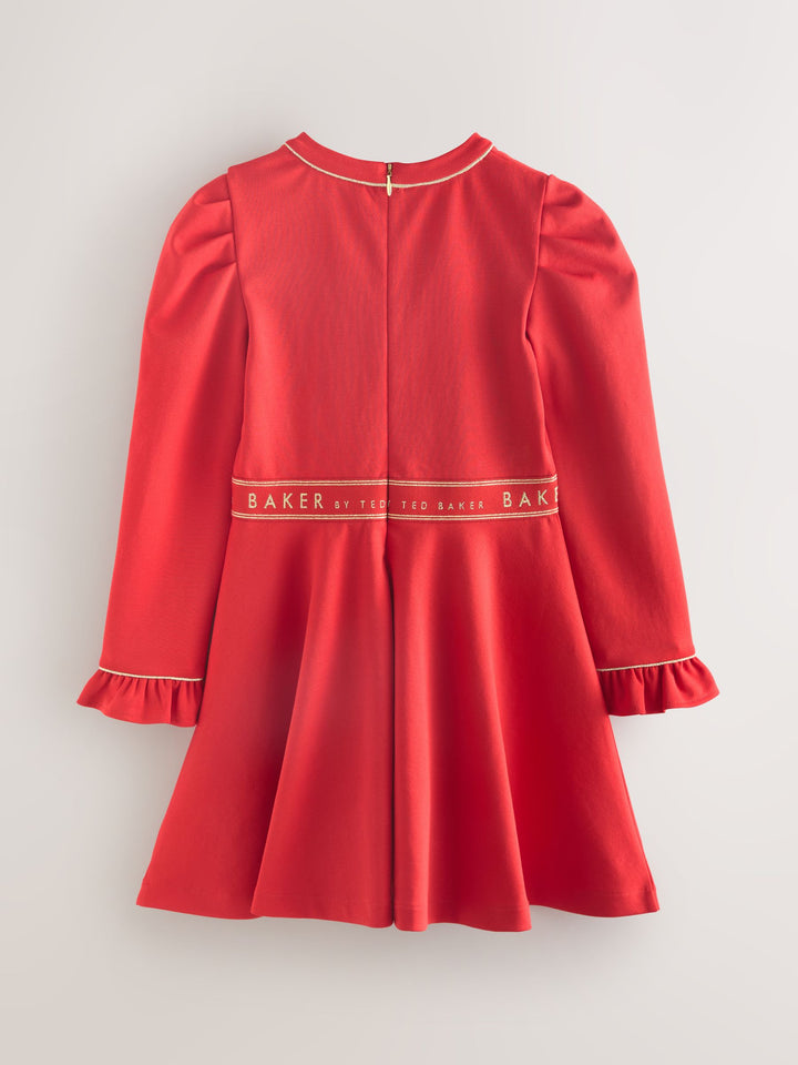 Formal with style, you'll love her in this beautiful ponte dress from Baker by Ted Baker. Made from a soft ponte fabric, this dress is designed with gold lurex piping on the collar edge and cuffs, not to mention our iconic Baker branded gold waistband. Finishing touches include pale gold Baker branded hardware and a zip at the back. The perfect dress for any formal occasion. 96% Polyester, 4% Elastane. Country of Origin: China