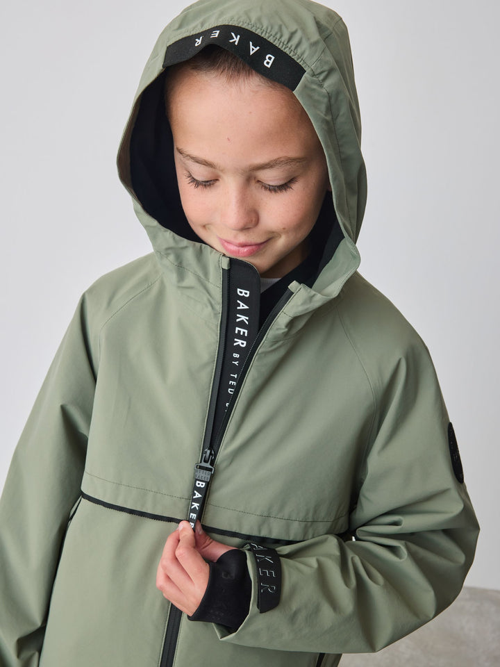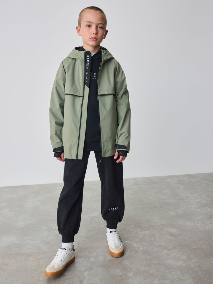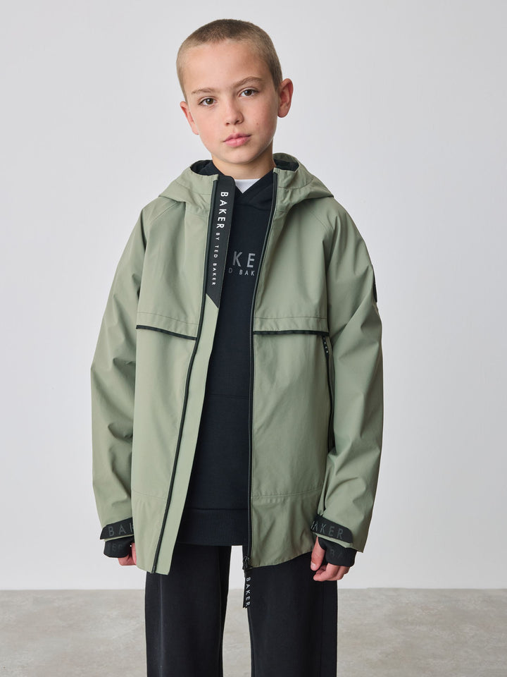 Keep him protected from the elements in style with the Baker by Ted Baker Waterproof Fleece Lined Coat. This essential outerwear piece is designed to be fully waterproof and durable, ensuring he stays dry and comfortable on wet days. Features include branded storm cuffs, a spacious large inner pocket for essentials, and adjustable self-fasten cuff tabs with branding for a customised fit. The coat boasts signature Baker by Ted Baker detailing with a branded inner zip placket, a distinctive branded badge on the arm, and bold BAKER details on the front of the hood and across the back of the coat. A branded zip puller adds the final touch, while the soft TB fleece lining ensures added warmth and comfort, making this coat a must-have for any young adventurer. Waterproof TB fleece lining Adjustable cuff tabs Branded detailing Main 100% Polyester. Body Lining 100% Polyester. Sleeve Lining 100% Polyester. Cuffs 94% Polyester, 6% Elastane. Country of Origin: China Made from durable fabric., Waterproof protection against the rain to keep you dry.