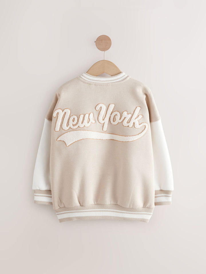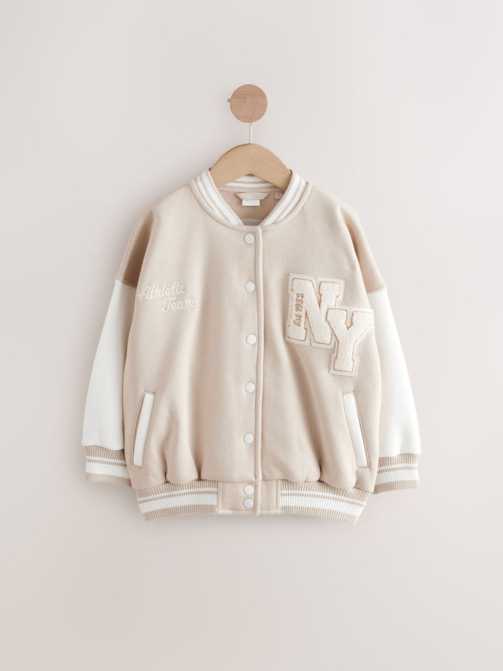 Beige Boucle Varsity Embroidered Jacket (3-16yrs)