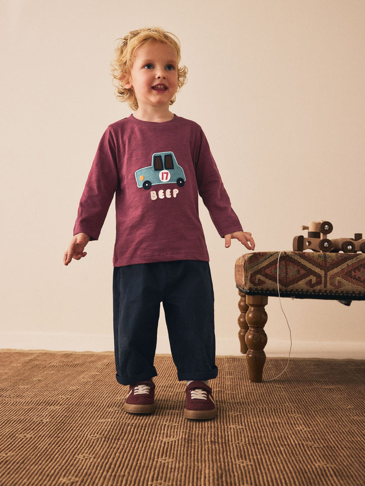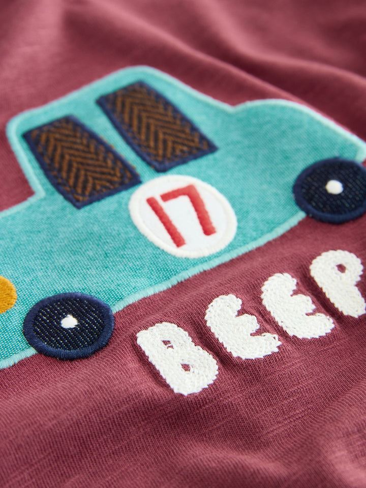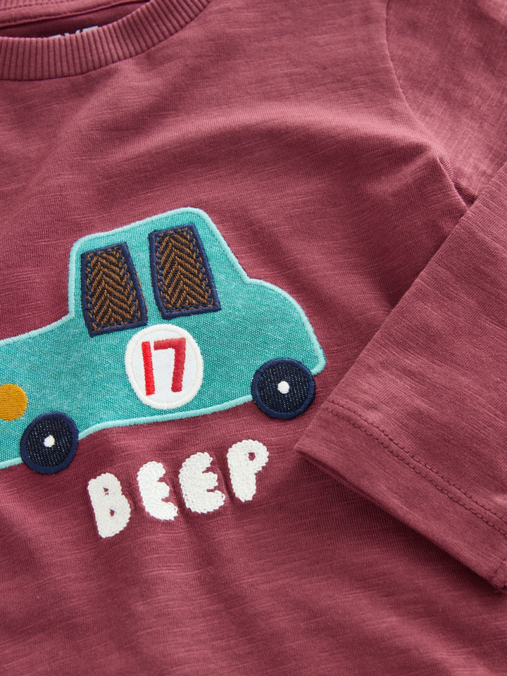 Berry Red Car Long Sleeve Appliqué T-Shirt (3mths-7yrs)