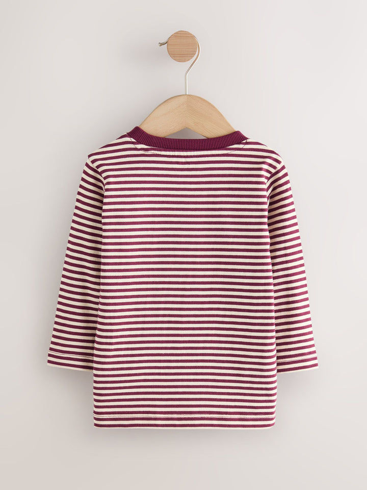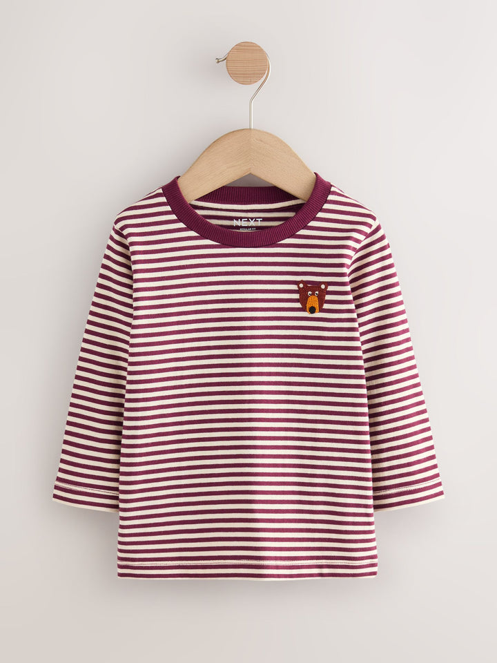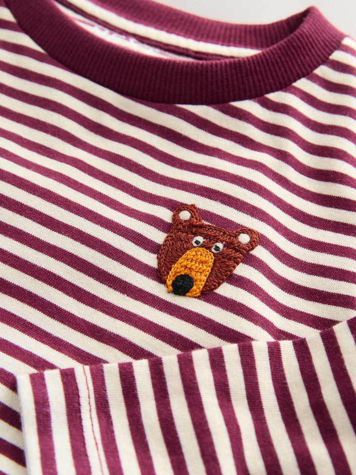 Berry Red Stripe Bear Long Sleeve Appliqué T-Shirt (3mths-7yrs)