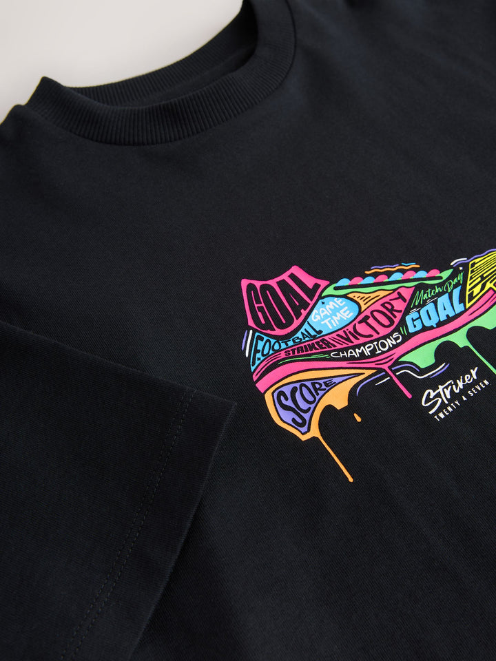 Black/ Brights Football Boot Relaxed Fit Short Sleeve Graphic Print T-Shirt (3-16yrs)