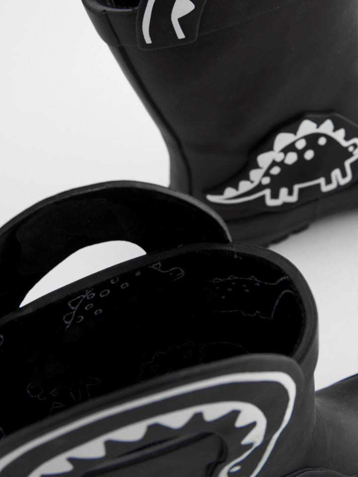 These classic black dinosaur Wellington boots are perfect for splashing and playing in the rain, with two handles for easy pull-on wear and a slip-resistant sole, perfect for wet weather. Pull-on handles Waterproof Slip-resistant sole View the How to Measure and Fit at Home Guide Upper - Other Materials, Lining & Sock - Textile, Sole - Other Materials. Country of Origin: China