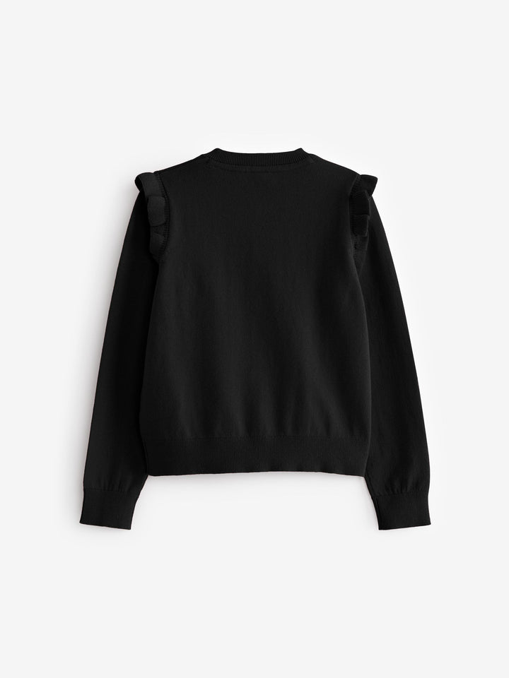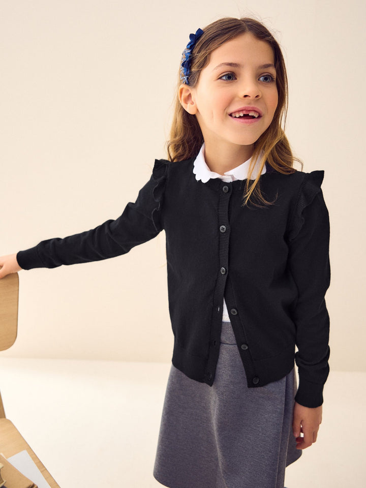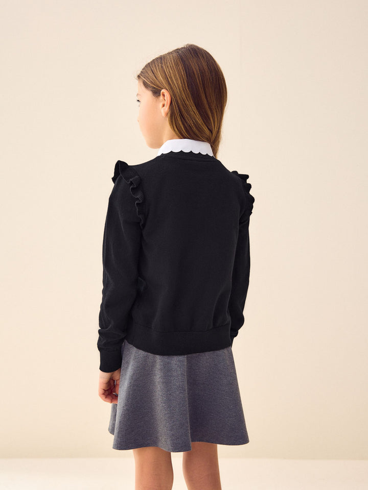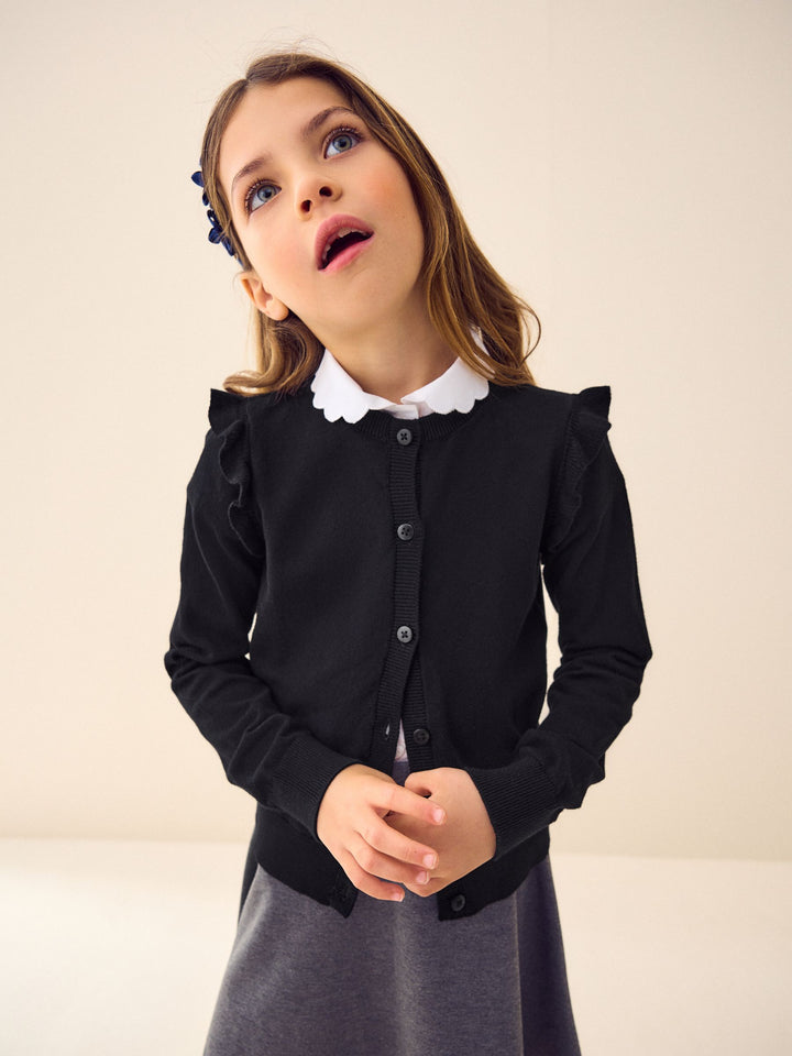 Black Cotton Rich Frill Shoulder School Cardigan (3-16yrs)