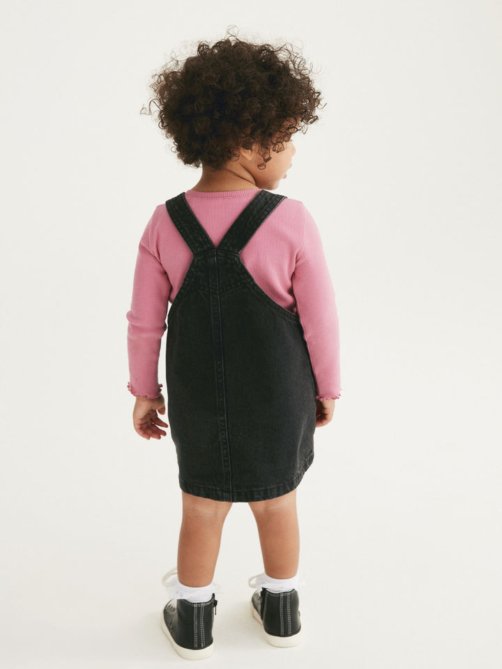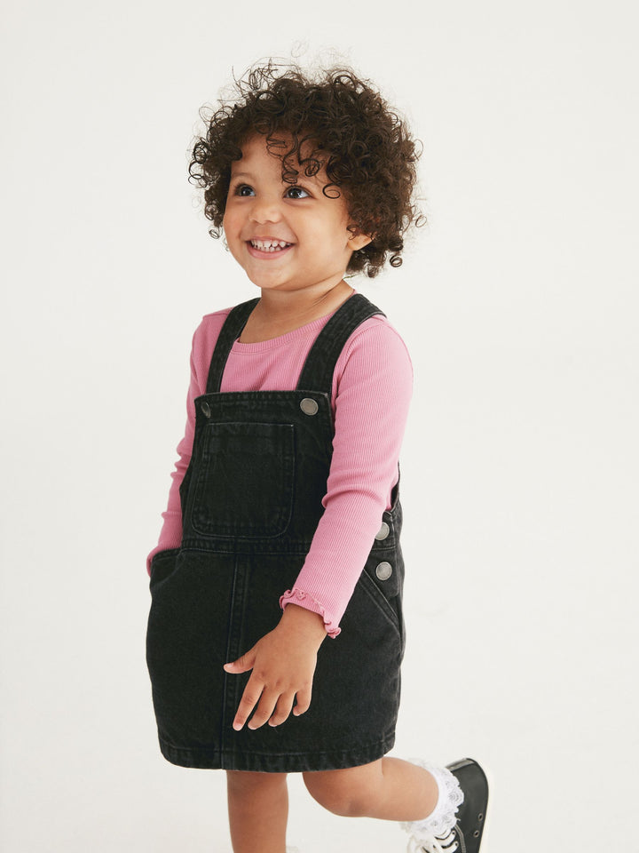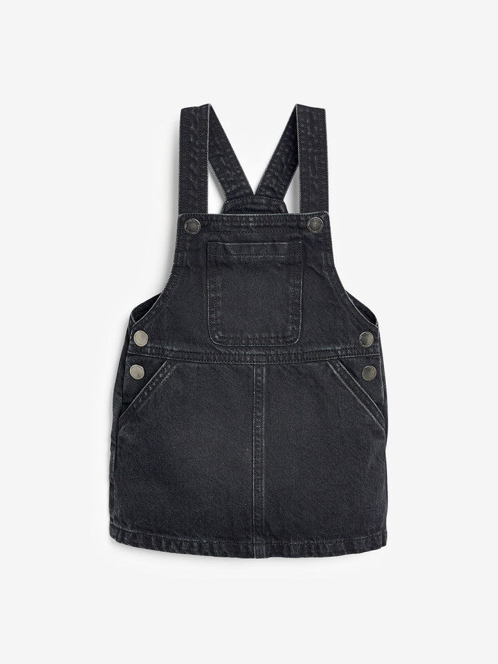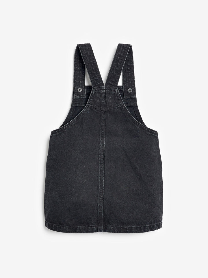 Perfect for play, your little lady will love our charming denim pinafore dress. This classic Black dress is made from soft cotton, with pockets, and is fitted with metal popper button fastenings on the front and side. layer it up over a t-shirt and with her favourite trainers for the ideal playtime outfit. 100% cotton Metal popper fastenings Side pockets 100% Cotton. Country of Origin: Bangladesh