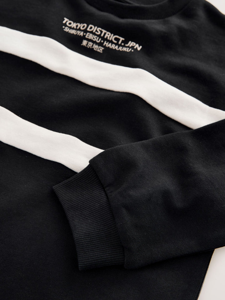 Black/Ecru Relaxed Fit Heavyweight Long Sleeve Colourblock T-Shirt (3-16yrs)