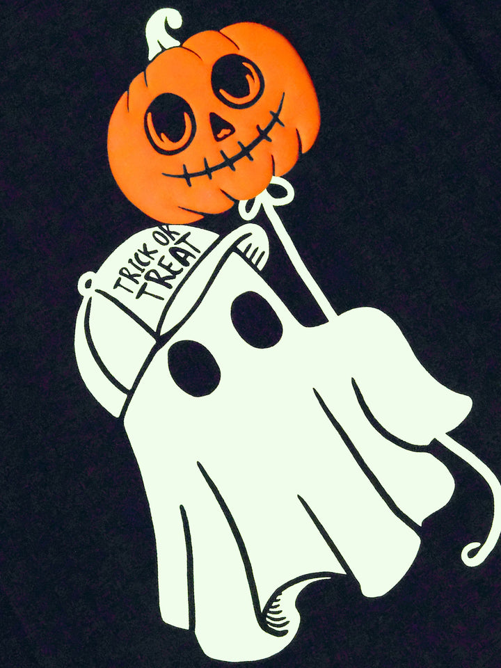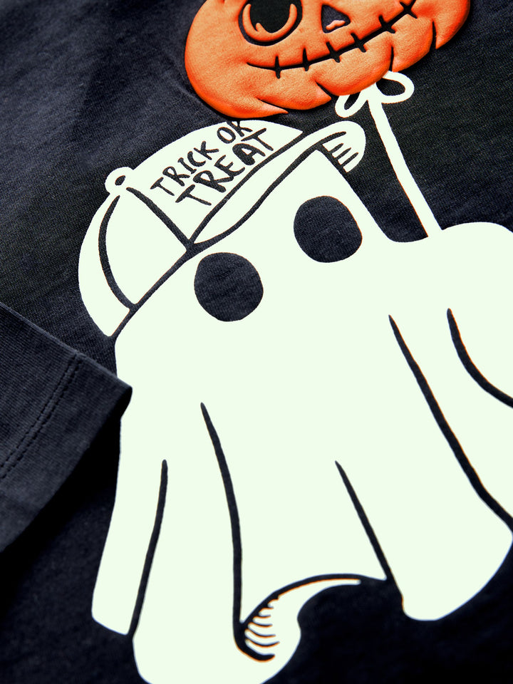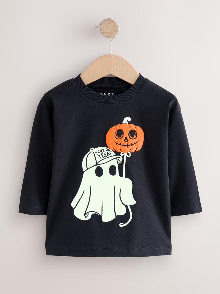 Black Glow in the Dark Ghost Halloween Long Sleeve Graphic Print T-Shirt (3mths-7yrs)