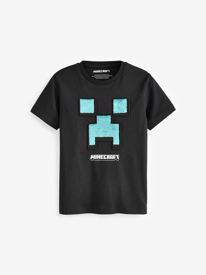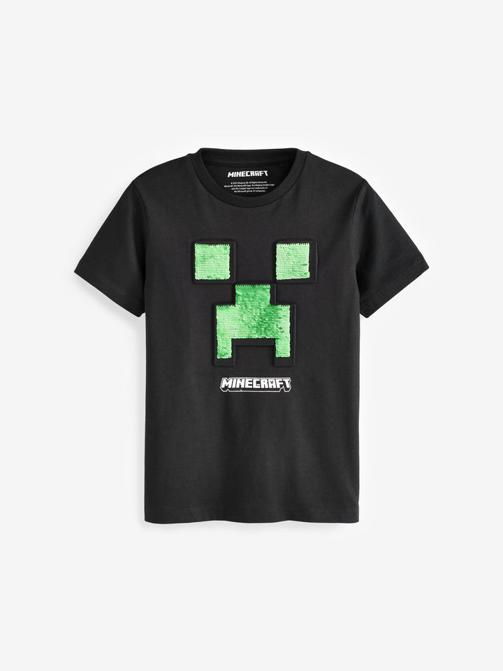 Perfect for your little gamer, this pure-cotton T-shirt is decorated with an officially licensed minecraft graphic to the chest, with flippy sequin detailing that changes from green to silver. Cotton fabric Licensed Minecraft T-Shirt Flippy sequin creeper design Crew neck Short sleeve 100% Cotton. Country of Origin: Bangladesh Better Cotton - By choosing our cotton products, you're supporting our investment in Better Cotton's mission to help cotton farming communities survive and thrive while protecting and restoring the environment. This product is sourced via a system of mass balance and therefore may not contain Better Cotton. Learn more at www.next.co.uk/better-cotton