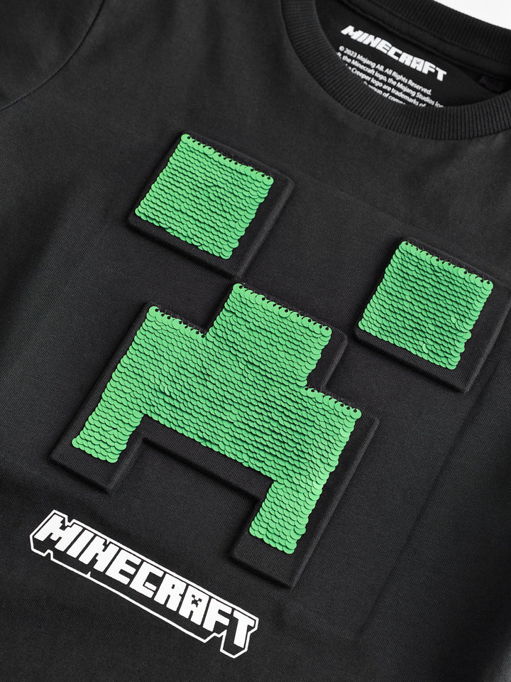 Black/Green 100% Cotton Minecraft Flippy Sequin T-Shirt (4-16yrs)