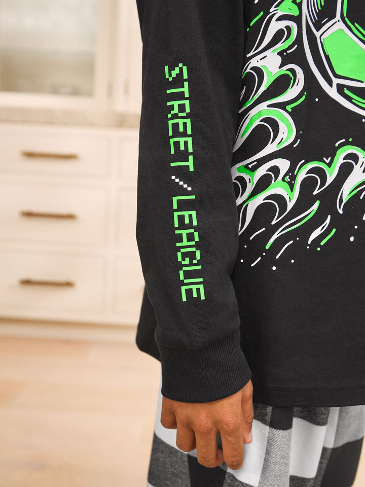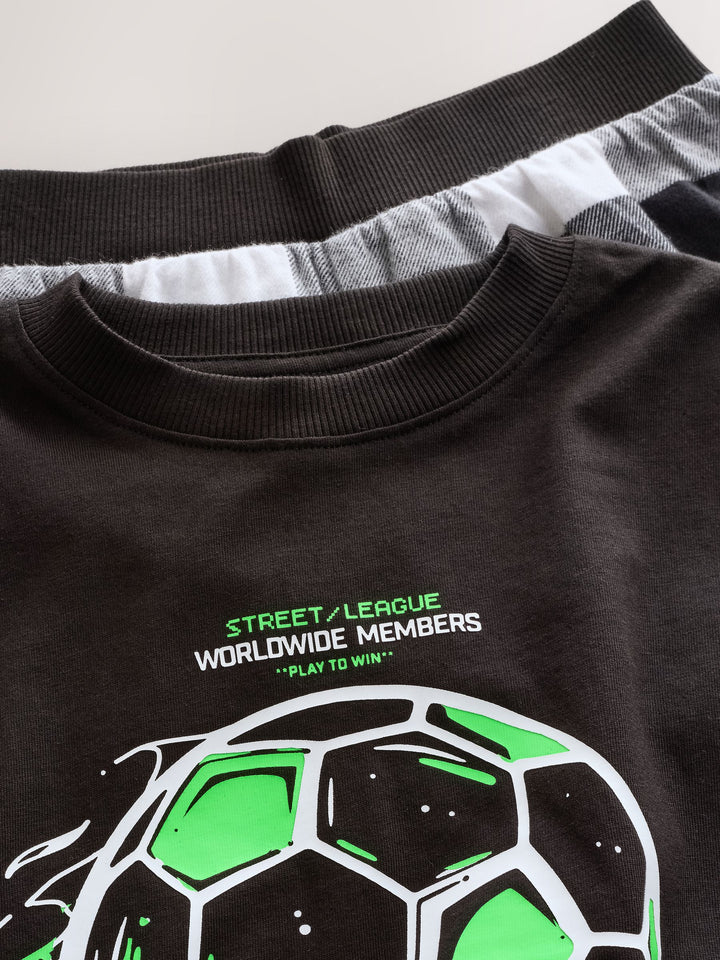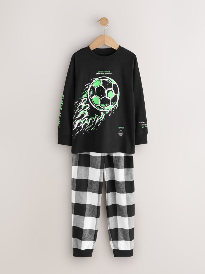 Black/Green Buffallo Check Football Single Woven Pyjamas (3-16yrs)