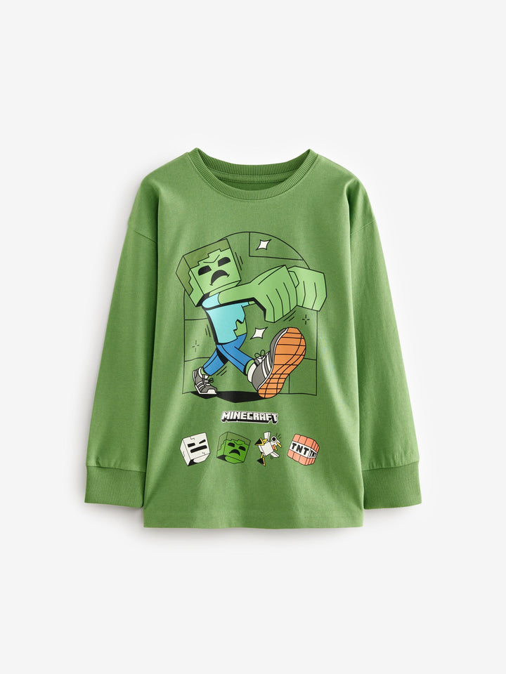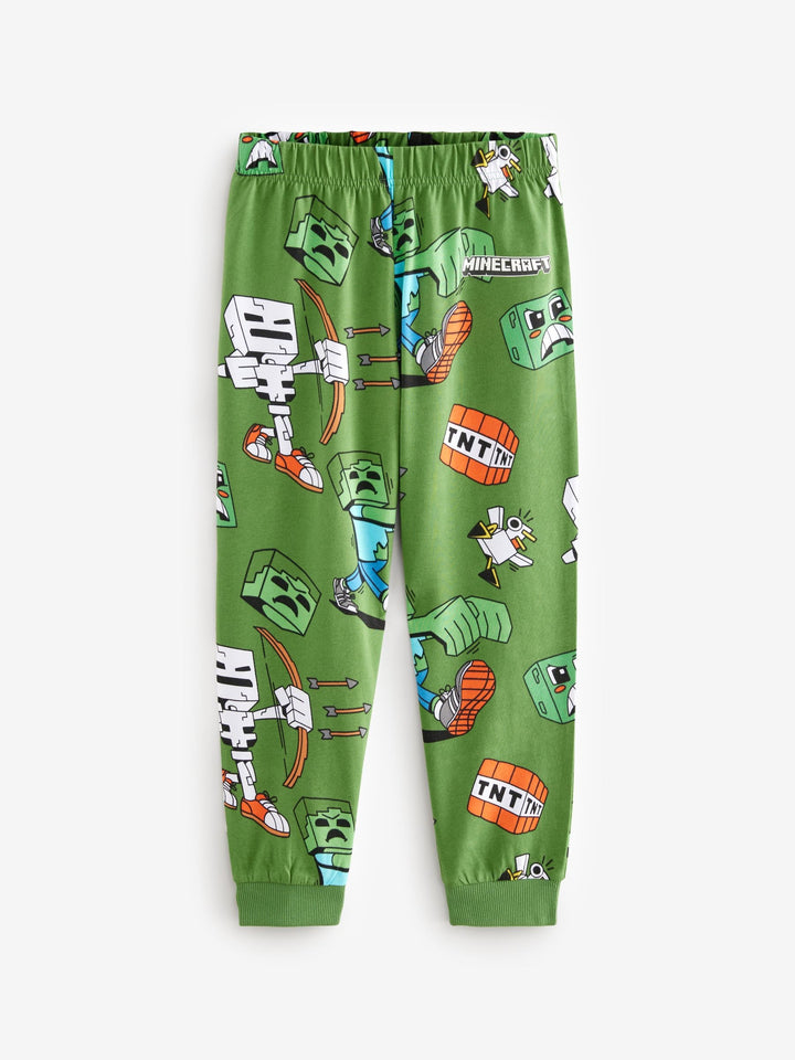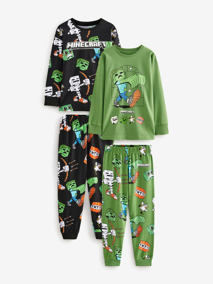 The perfect sleepwear for Minecraft fans, this 2-pack features long sleeve tops and full-length bottoms made of pure cotton in a black and green variation that can be mixed and matched, finished with an all-over officially licensed Minecraft print with their favourite characters. 2-pack 100% cotton Licensed Minecraft graphics Long sleeve tops Full-length bottoms Machine washable. 2 x Pyjama Top and 2 x Pyjama Bottom 100% Cotton. Country of Origin: Bangladesh Warning: Keep away from fire and flames.
