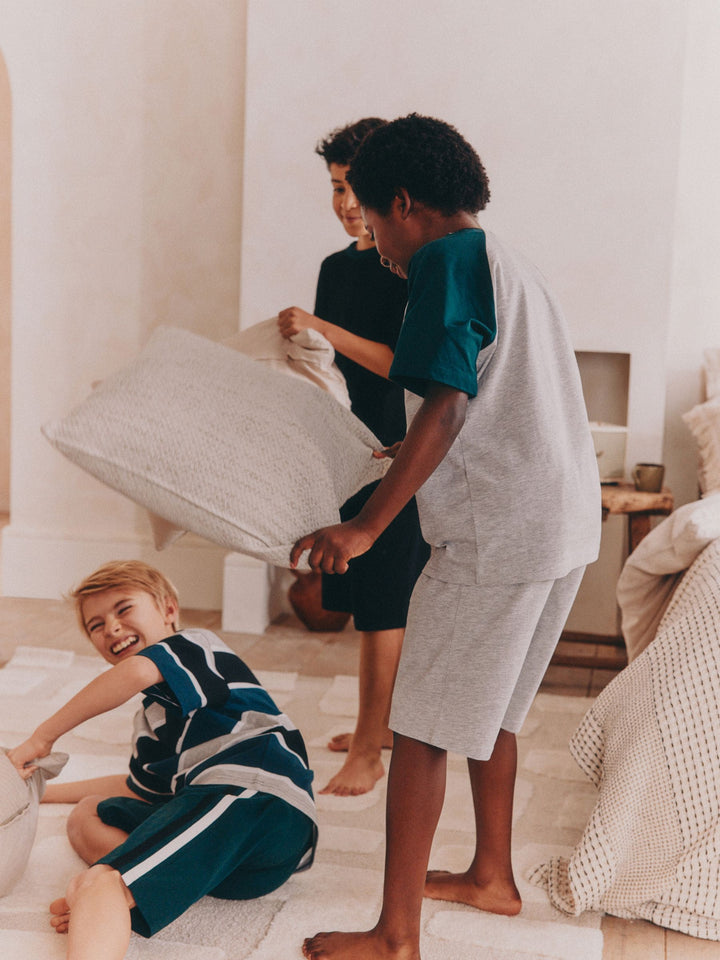 Machine washable. Pyjama Top Main 95% Cotton, 5% Viscose. Sleeves 100% Cotton. Pyjama Top 99% Cotton, 1% Viscose. Pyjama Top, Pyjama Bottom and Pyjama Bottom 100% Cotton. Pyjama Bottom 95% Cotton, 5% Viscose. Country of Origin: Bangladesh Warning: Keep away from fire and flames.