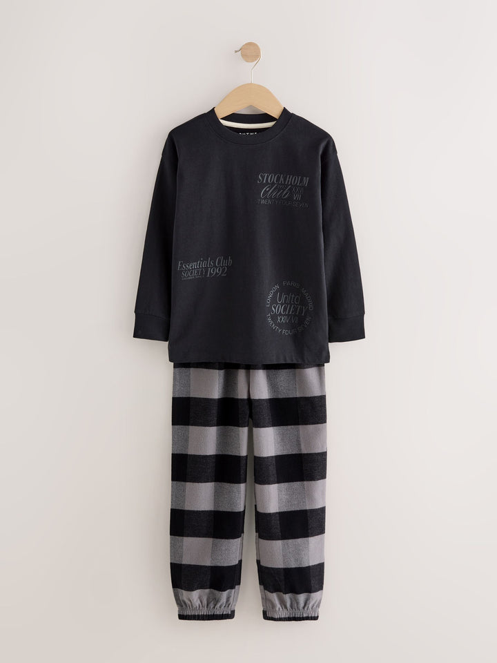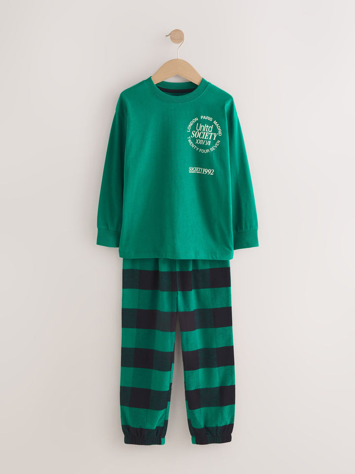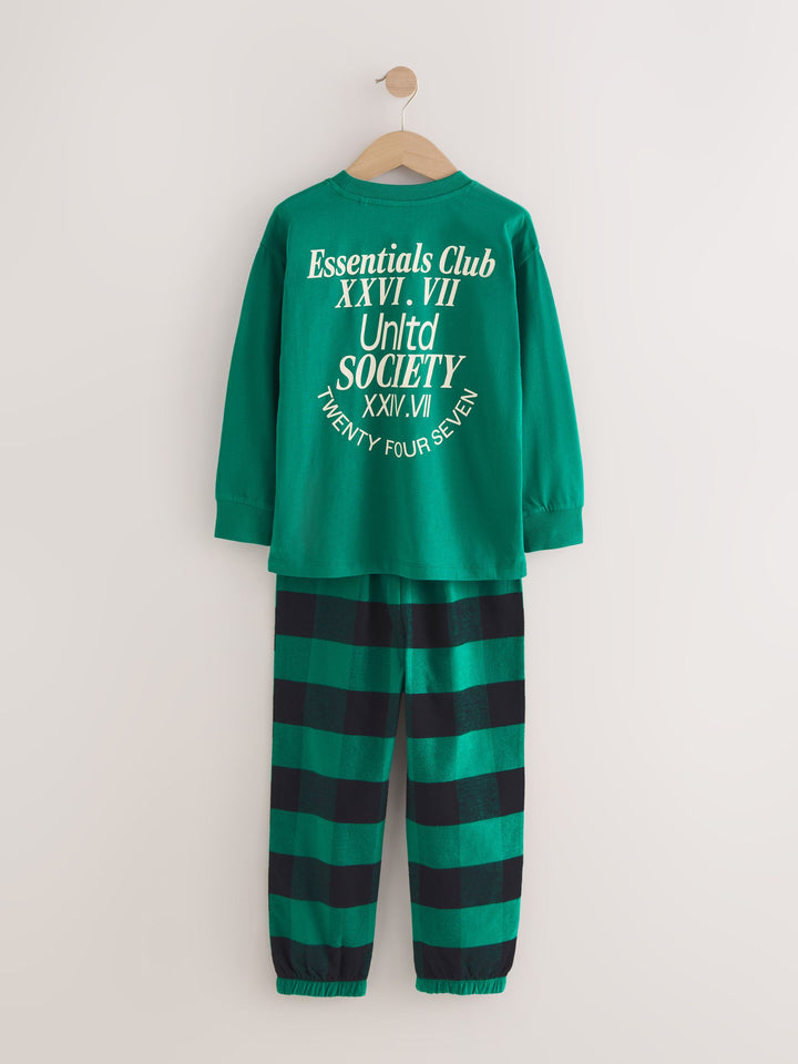 Black/Green/White Woven Check Pyjamas 3 Pack (3-16yrs)
