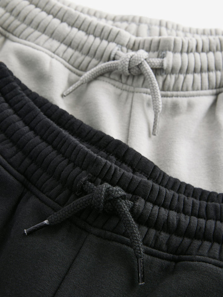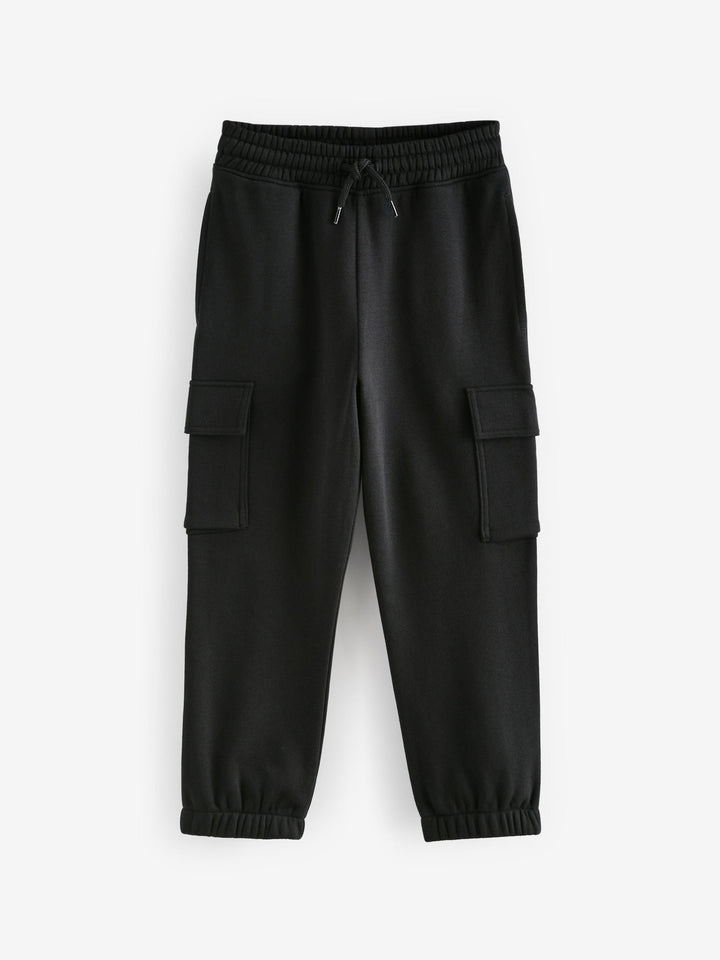 Stock-up on their comfortable staples, with this 2-pack of black and grey jogging bottoms, made from a cotton-rich fabric. Each pair of jogging bottoms features an adjustable elasticated waistband, cargo pockets to the thigh, side pockets and ankle cuffs. 2-pack Regular fit Cotton-rich fabric Side pockets Cargo pockets to the thigh Ankle cuffs Machine washable. 2 x Jogger 80% Cotton, 20% Recycled polyester. Country of Origin: Bangladesh