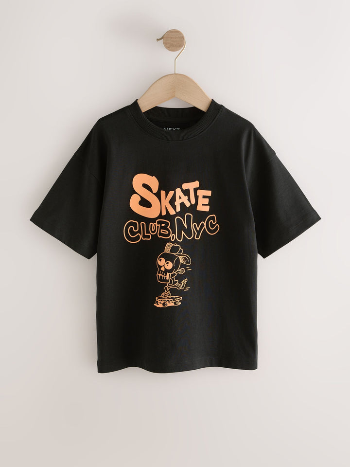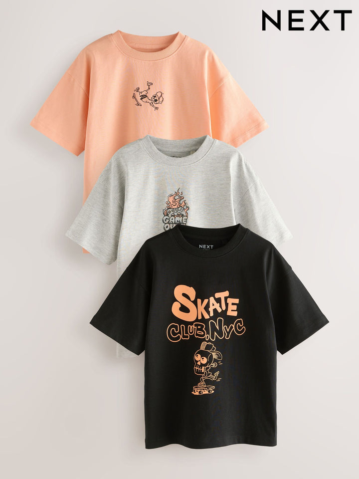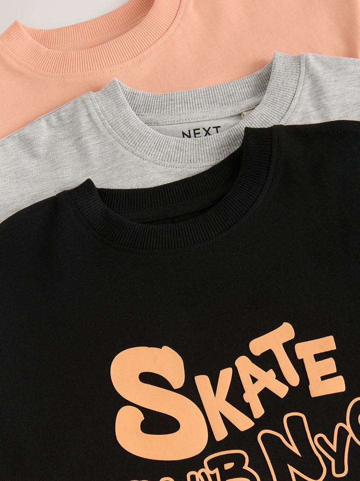 Black/Grey Skate Relaxed Fit Graphic Print Short Sleeve T-Shirts 3 Pack (3-16yrs)