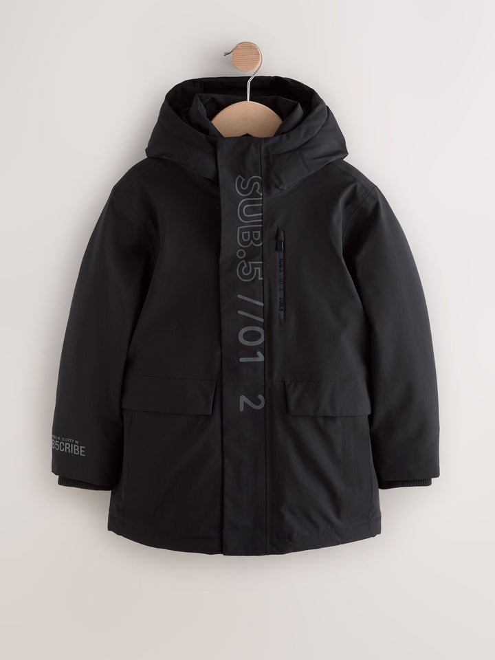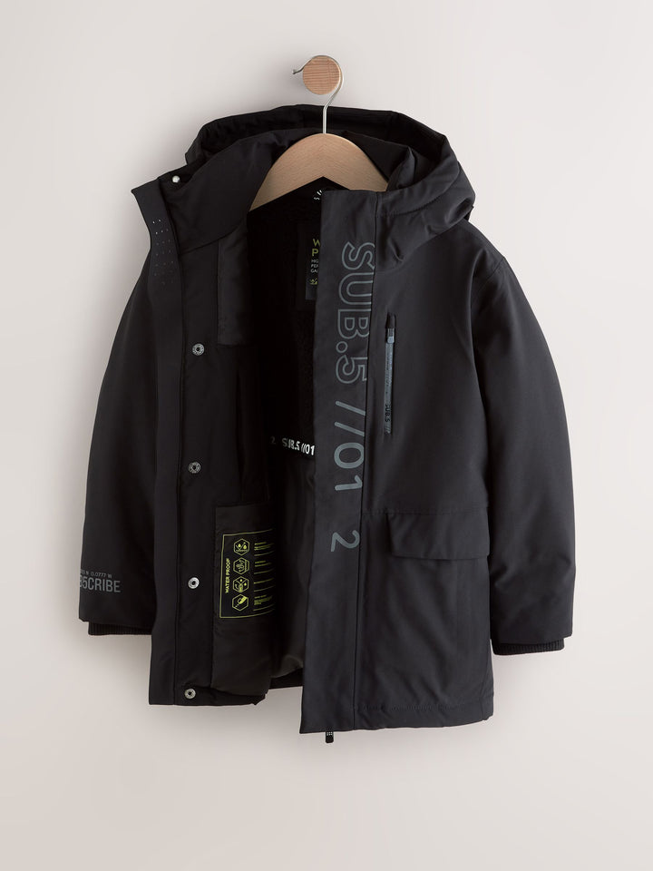Black/Grey Waterproof Parka Coat (3-17yrs)