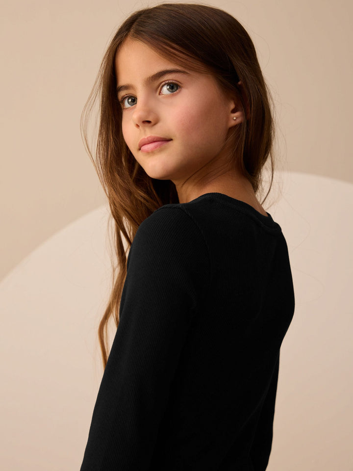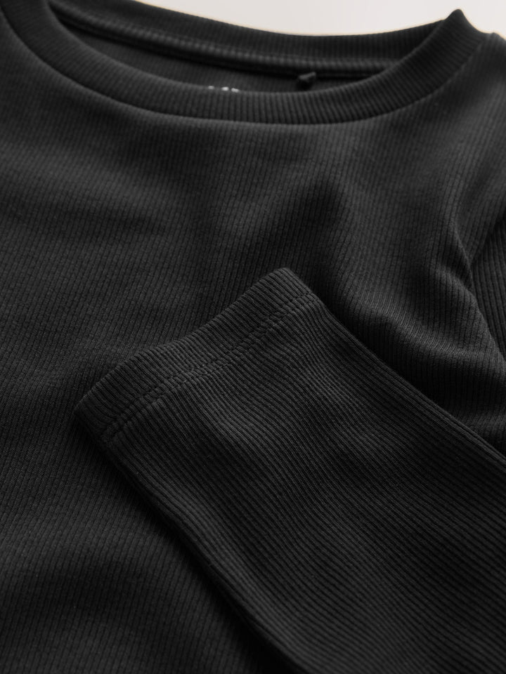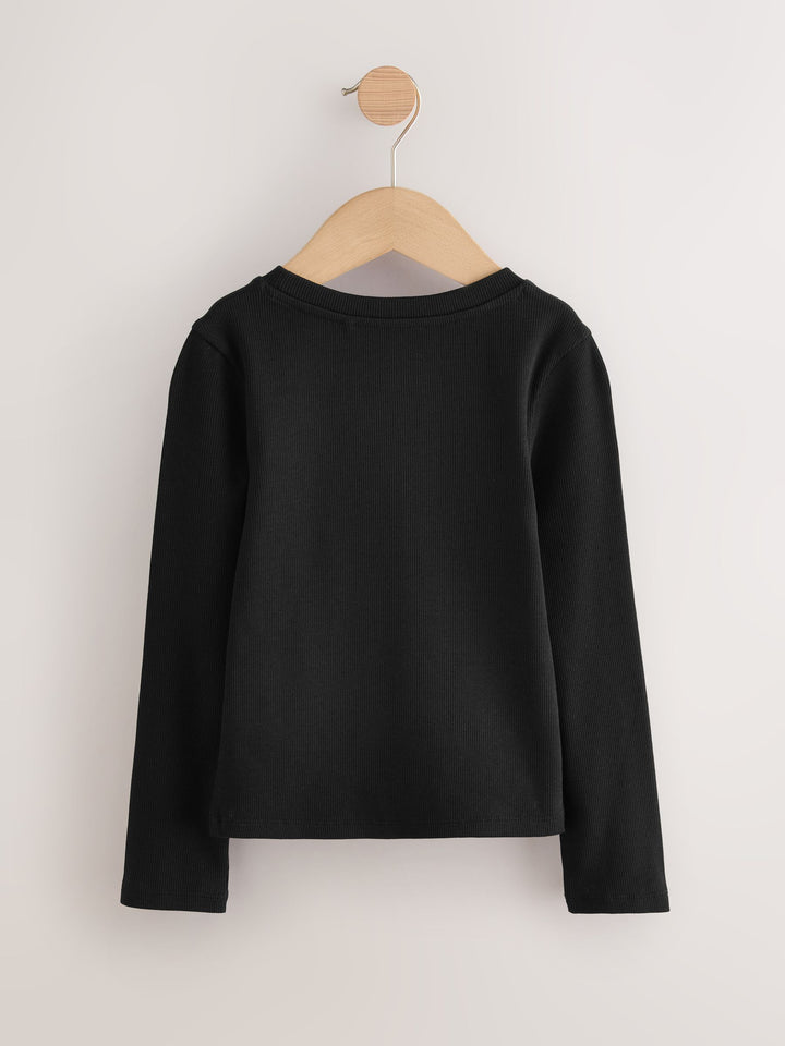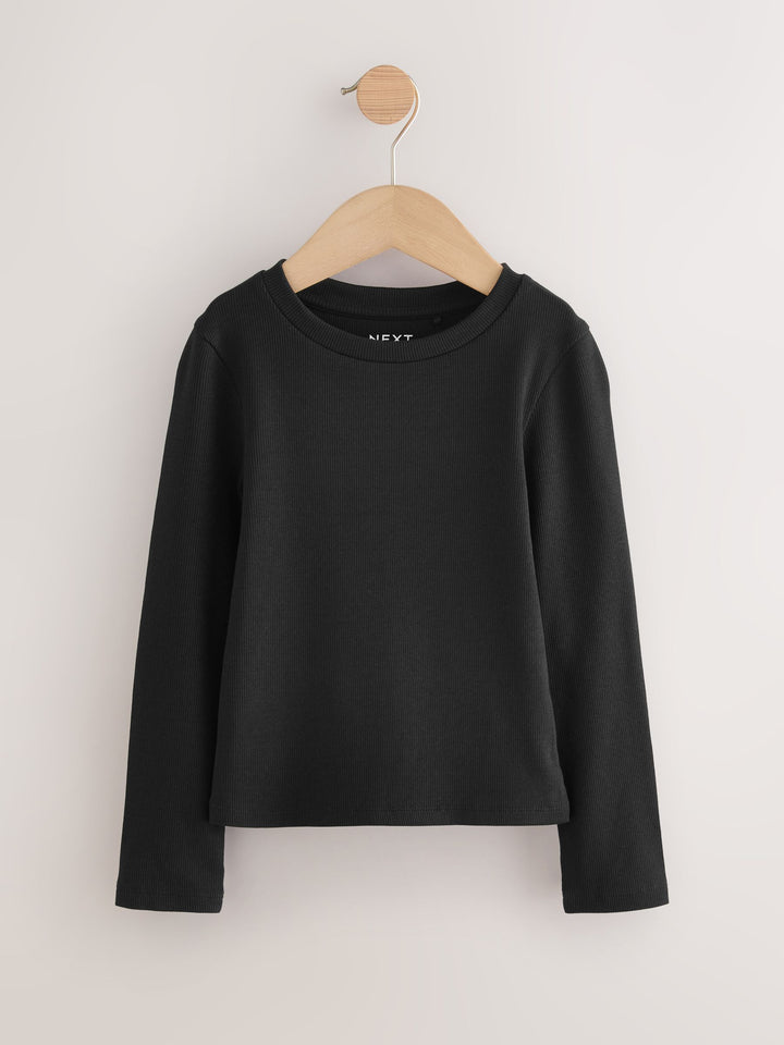 Black Long Sleeve Ribbed Top (3-16yrs)