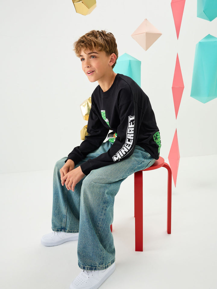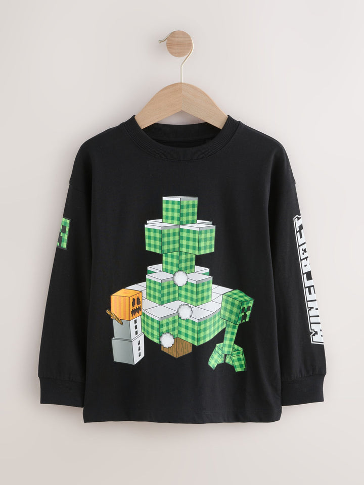 Black Minecraft Long Sleeve Christmas T-Shirt (3-16yrs)