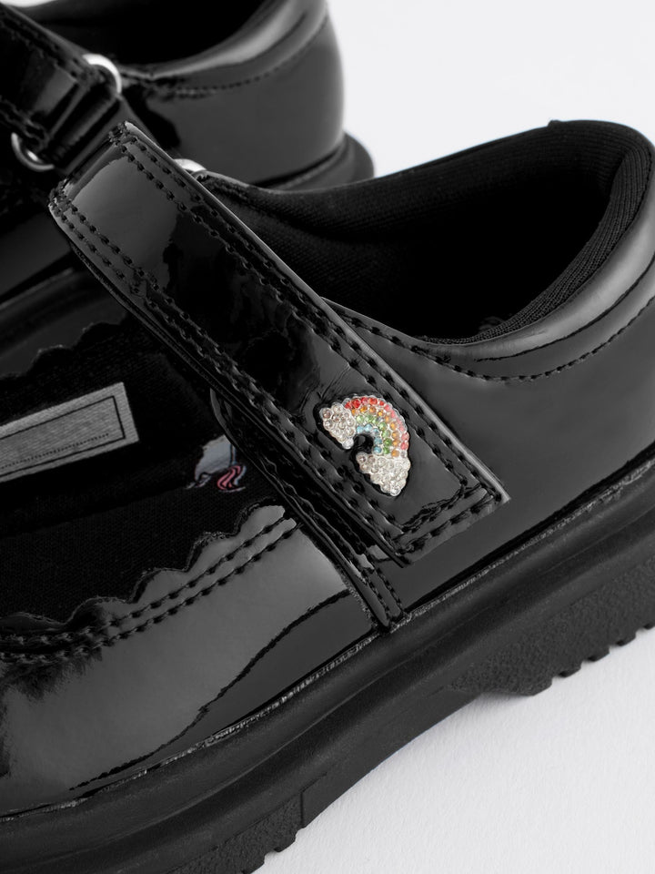 Black Patent Rainbow Chunky Mary Jane School Shoes