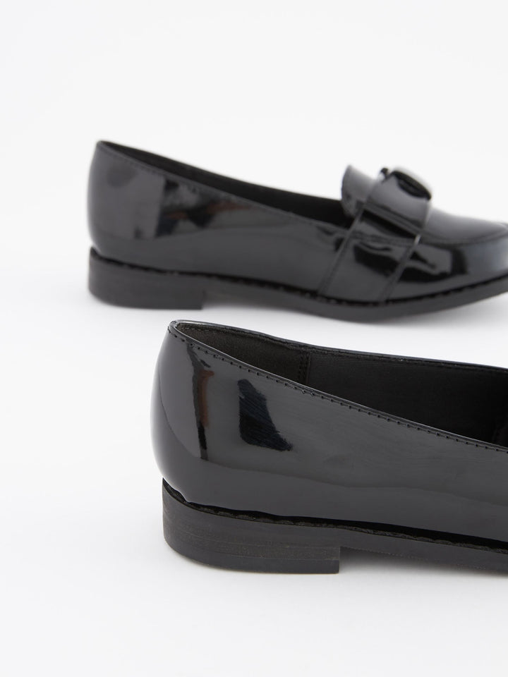 Keep them looking great day after day with our hard-working, stylish black school loafers, featuring a cute decorative bow and almond toe. Providing all day comfort in an easy slip-on style, their feet will be happy from morning drop-off until hometime. Scuff resistant uppers Cushioned for comfort Hard-wearing soles Micro-Fresh treated linings* *Micro fresh treated linings to fight odour causing bacteria - contains the biocide silver chloride. View the How to Measure and Fit at Home Guide Upper - Other Materials, Lining & Sock - Textile, Sole - Other Materials. Country of Origin: China