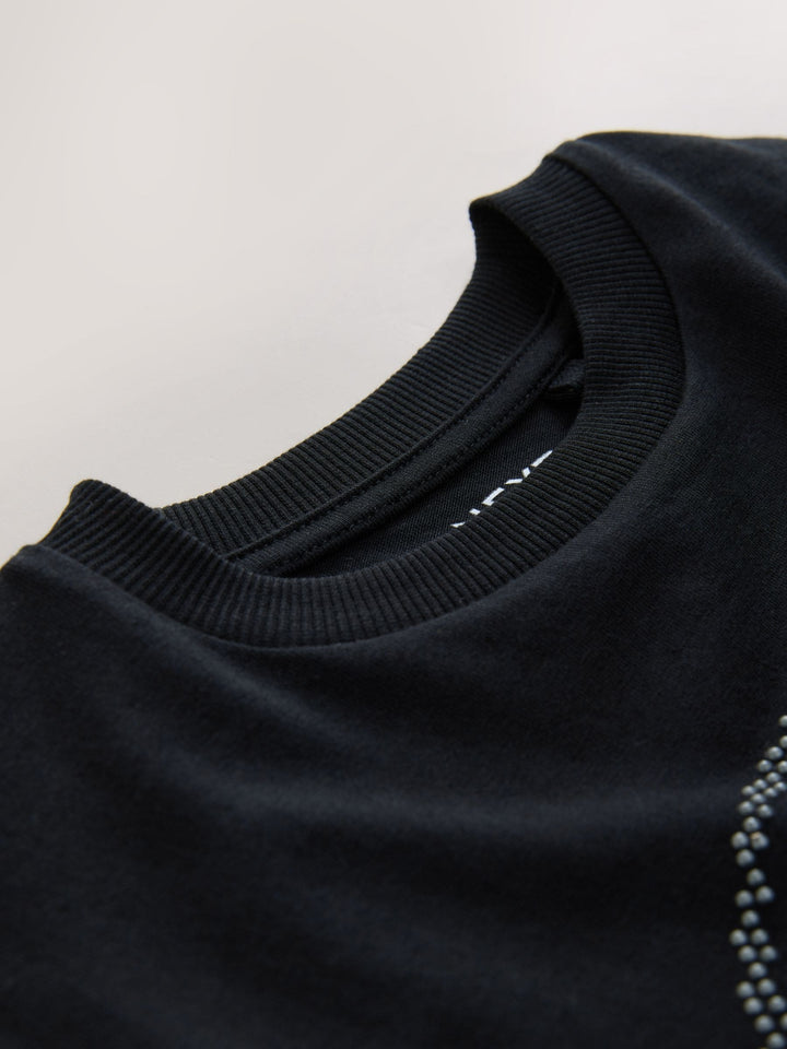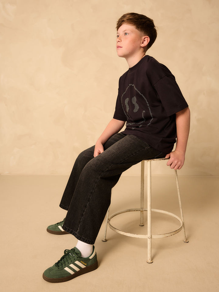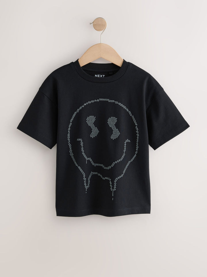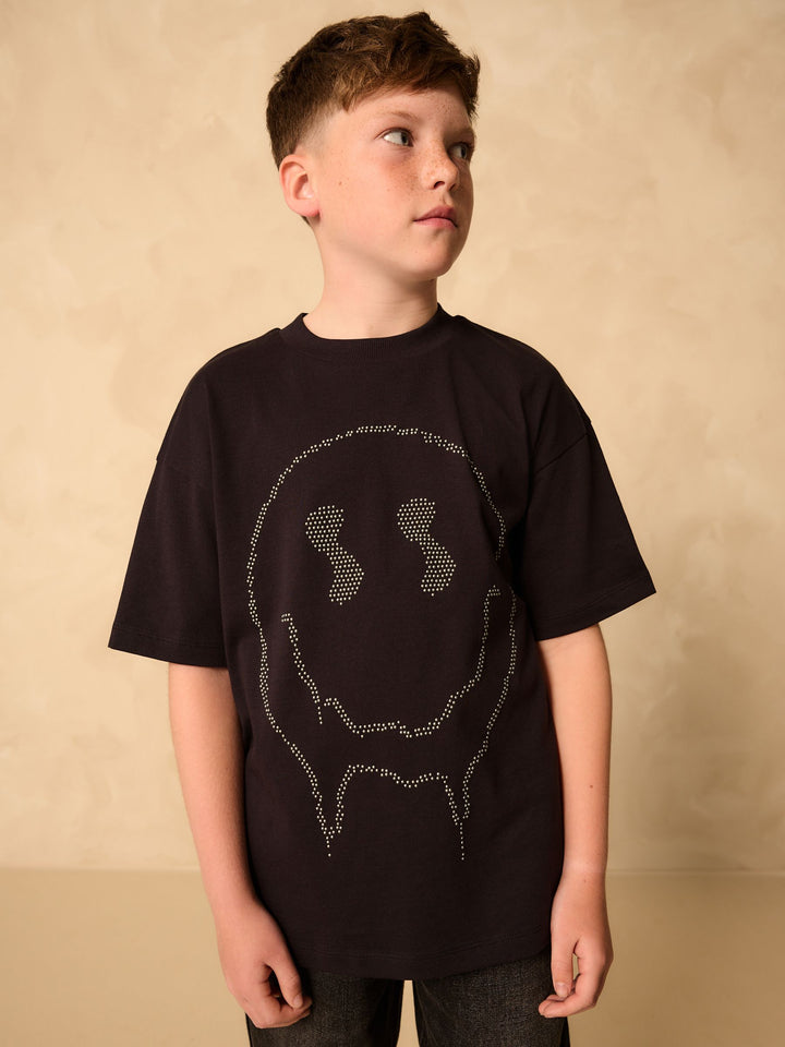 Black Stud Smile Relaxed Fit Short Sleeve Graphic Print T-Shirt (3-16yrs)