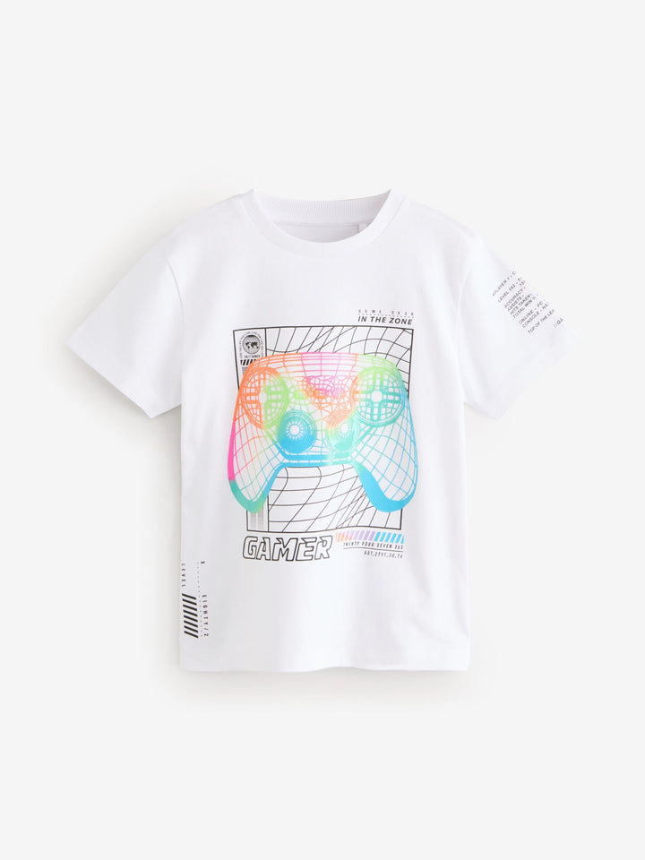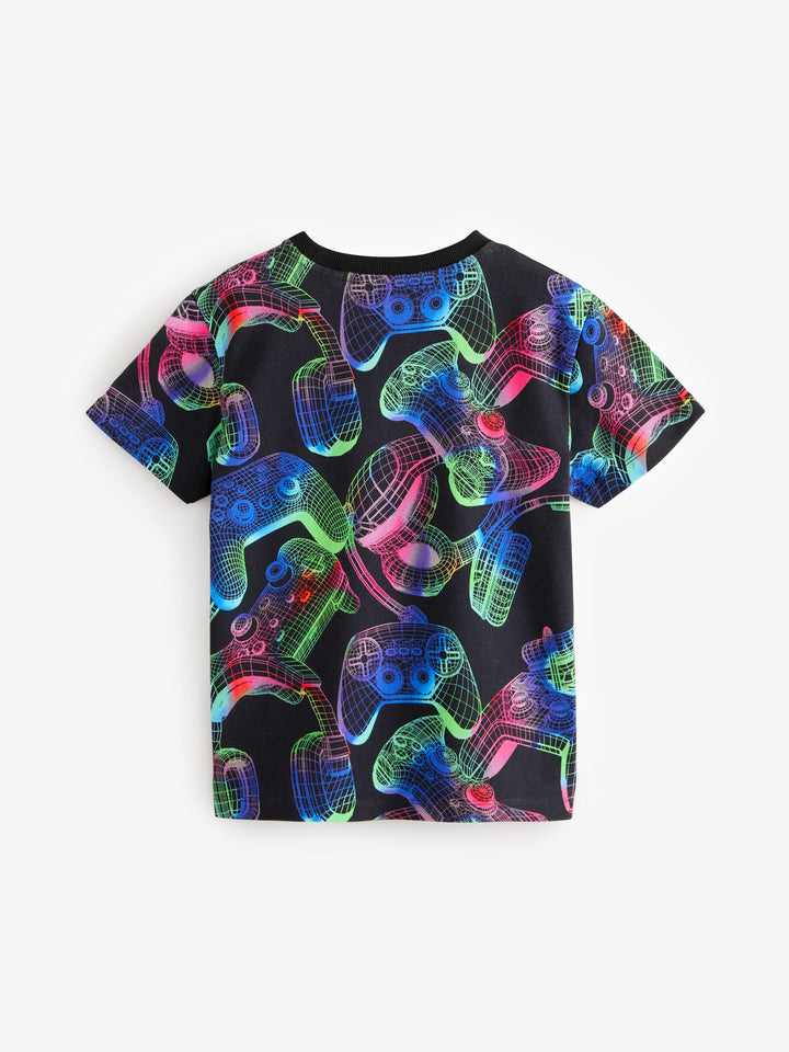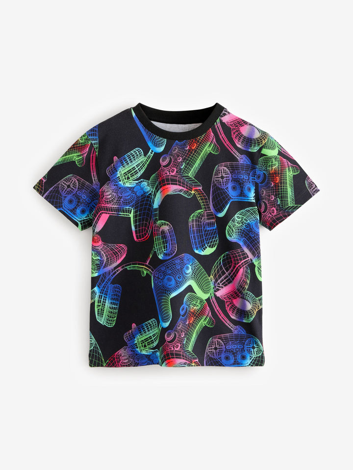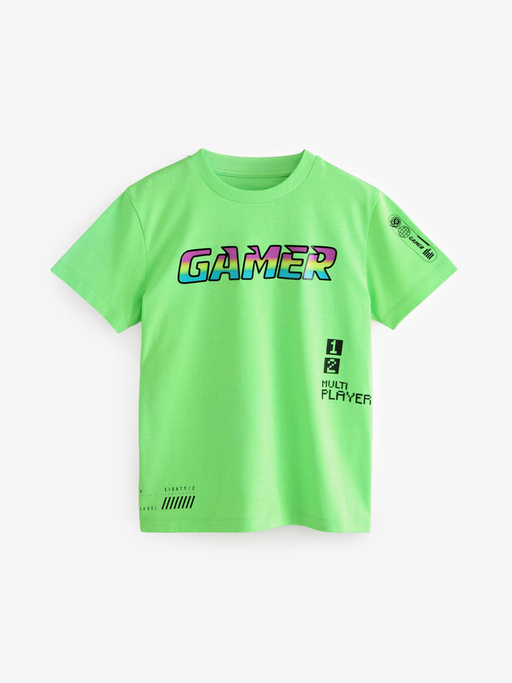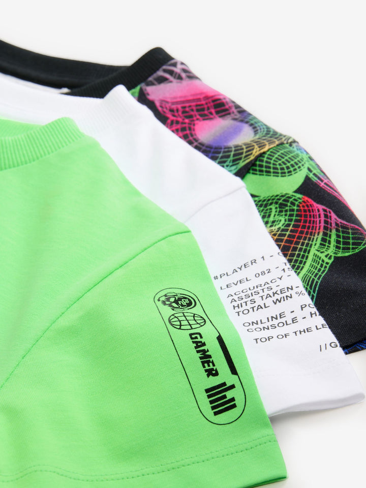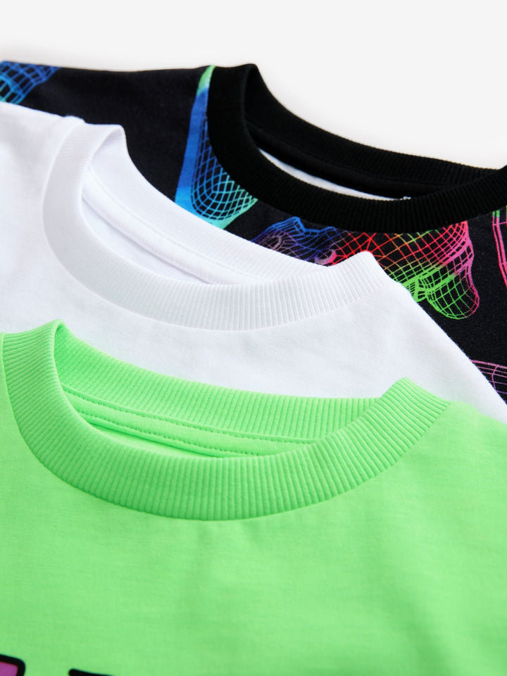 Black/White/Fluro Green Gamer Regular Fit Graphic Print Short Sleeve T-Shirts 3 Pack (3-16yrs)