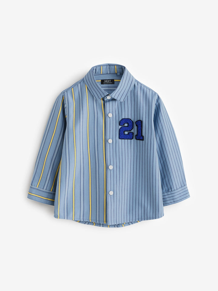 Blue 100% Cotton Long Sleeve Splice Shirt (3mths-7yrs)