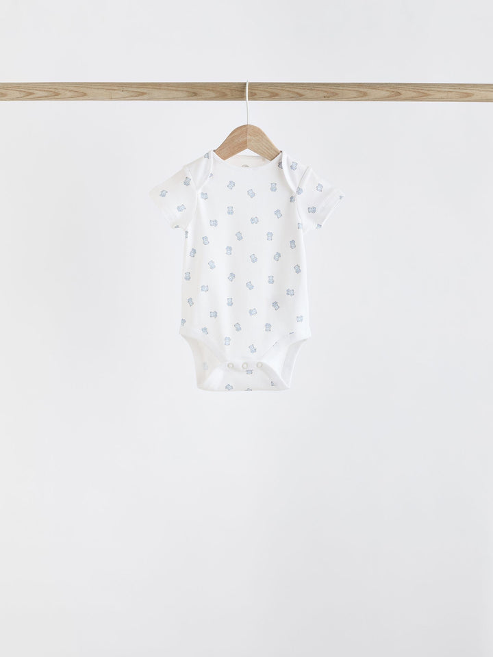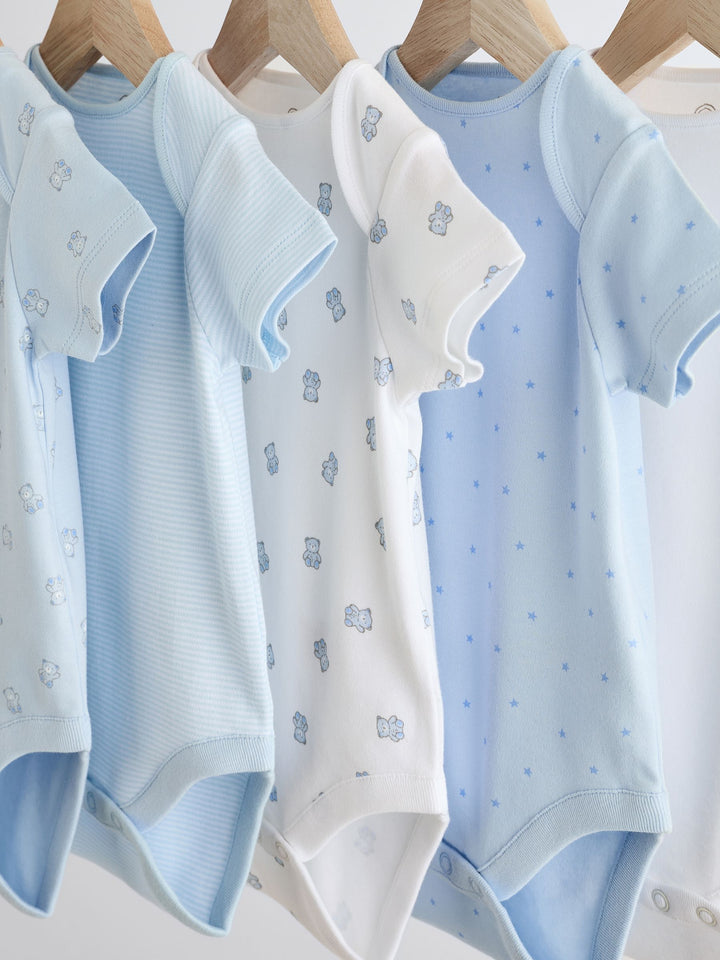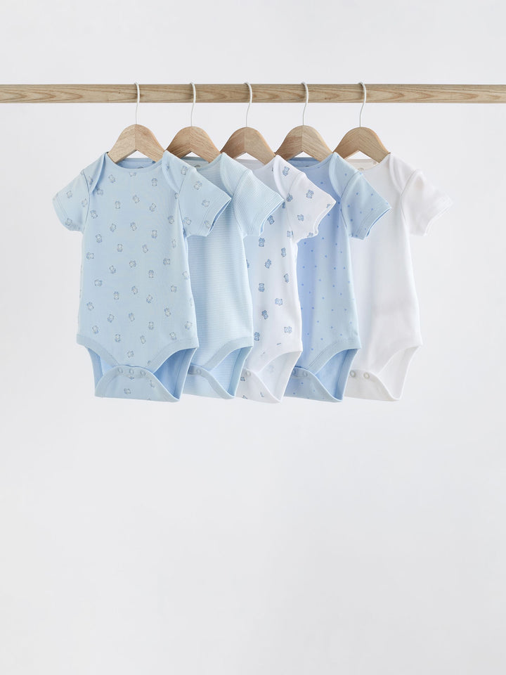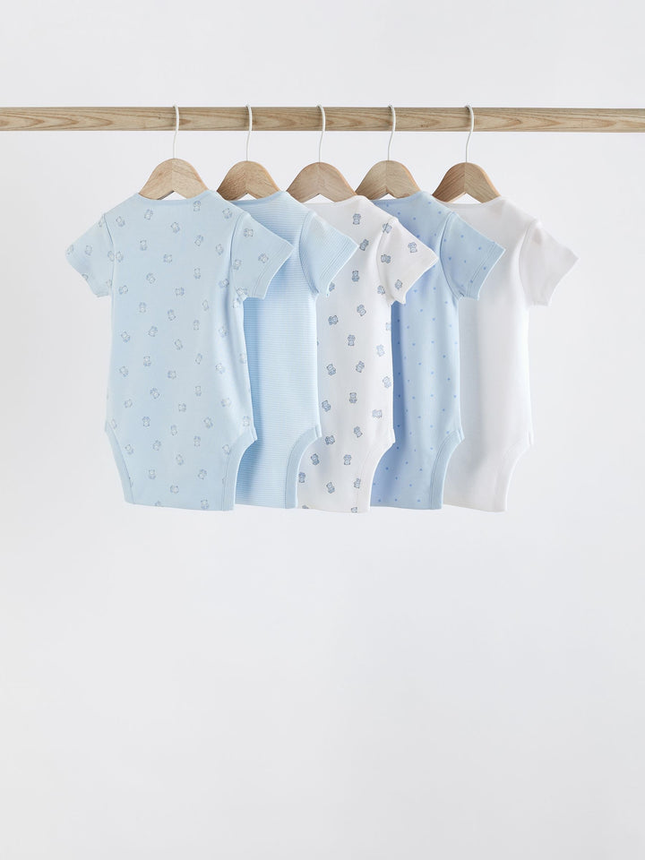 Blue 5 Pack Bear Short Sleeve Baby Bodysuits