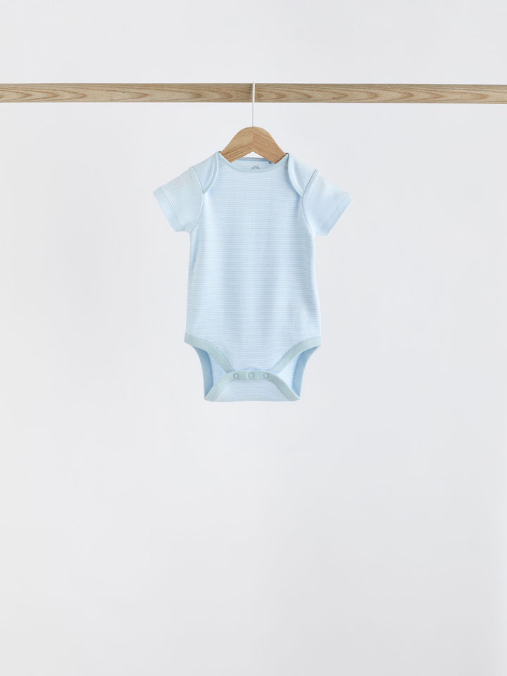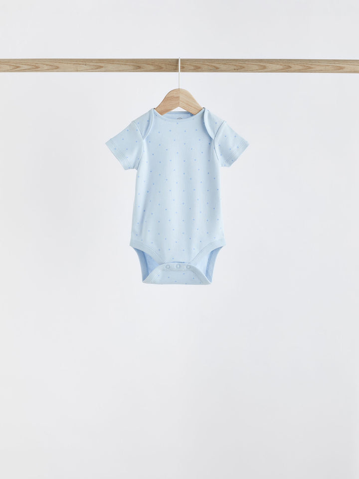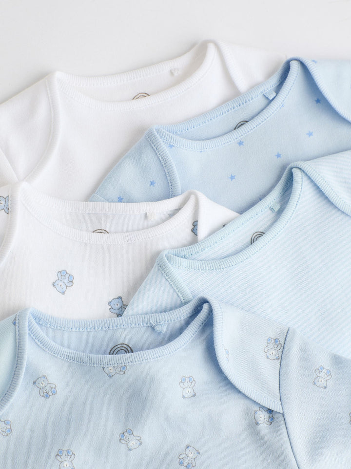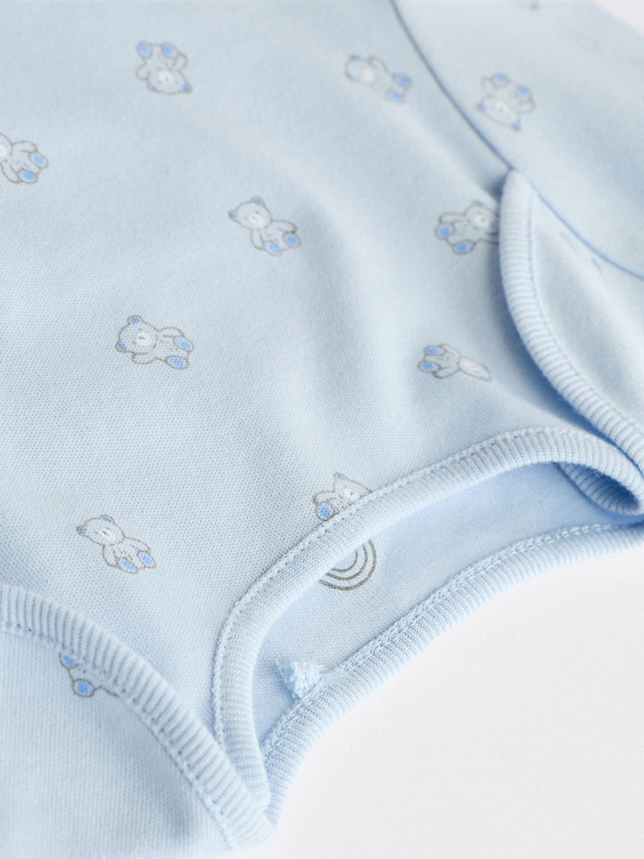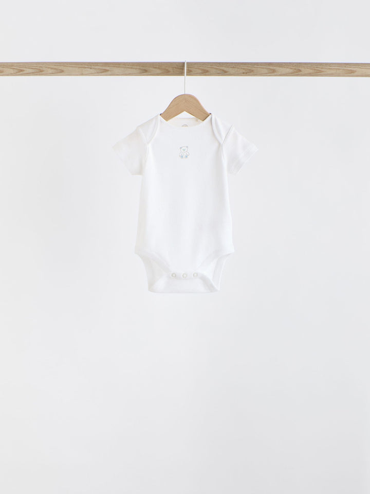 Blue 5 Pack Bear Short Sleeve Baby Bodysuits
