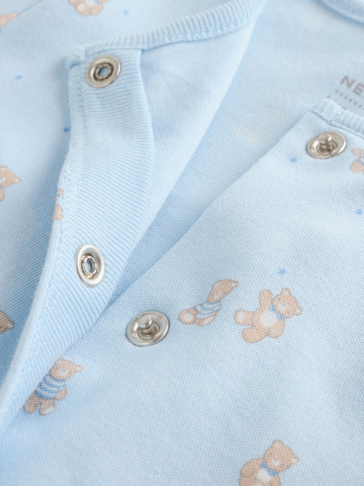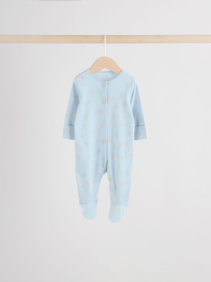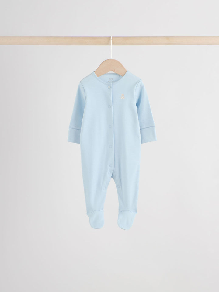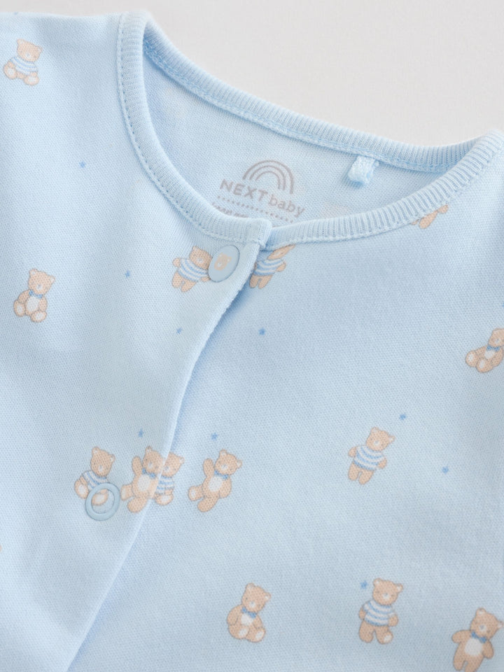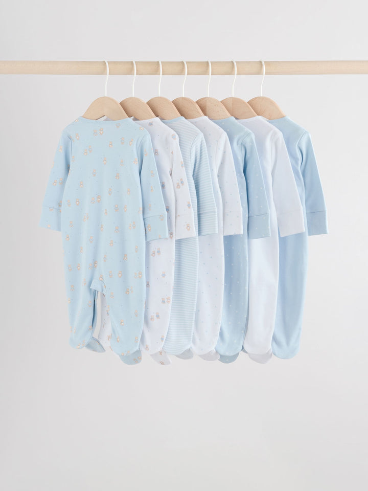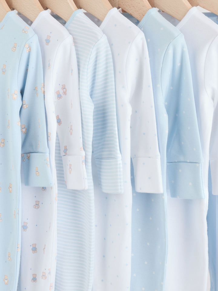 Ensure gentle comfort and fuss-free changes with this essential Blue 7 Pack Baby Bear Sleepsuit set. Each suit is crafted from Super Soft Cotton and features a convenient Popper Front Fastening. Designed for safety, they include Turn Back Scratch Mitts up to 3-6months, Inner Lined Feet with an Anti Slip Sole Print From 9-12 Months, and are guaranteed to contain No Harmful Chemicals or Dyes / Nickel Free Poppers. 7 Pack Sleepsuits Super Soft Cotton Popper Front Fastening Turn Back Scratch Mitts up to 3-6months Inner Lined Feet Anti Slip Sole Print From 9-12 Months No Harmful Chemicals or Dyes / Nickel Free Poppers Machine washable. 7 x Sleepsuit 100% Cotton. Country of Origin: India Warning: Keep away from fire and flames.