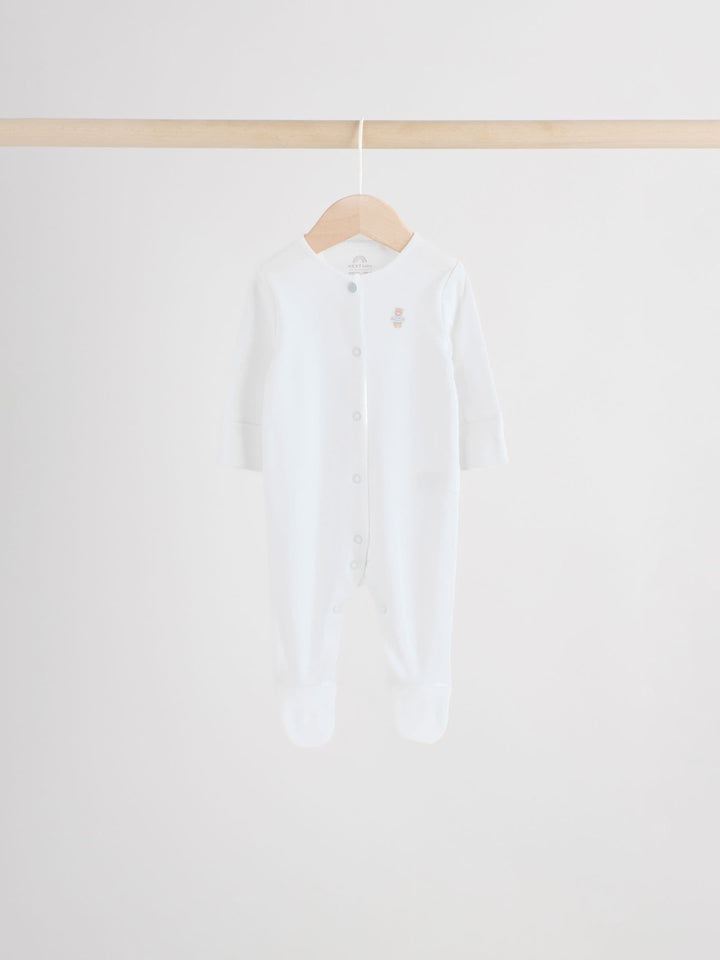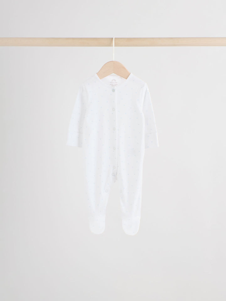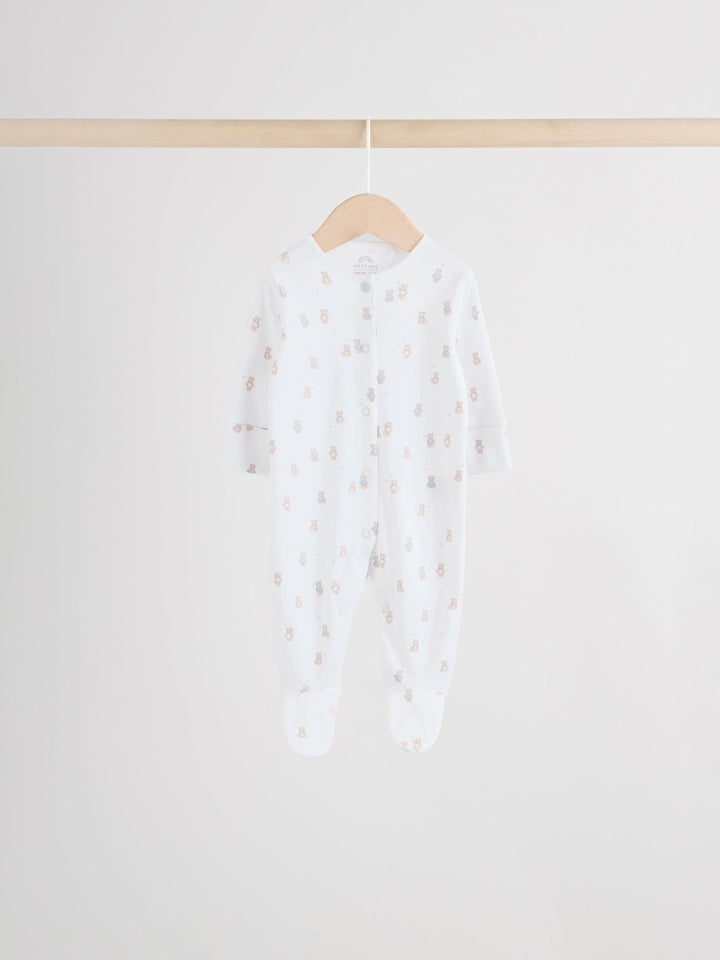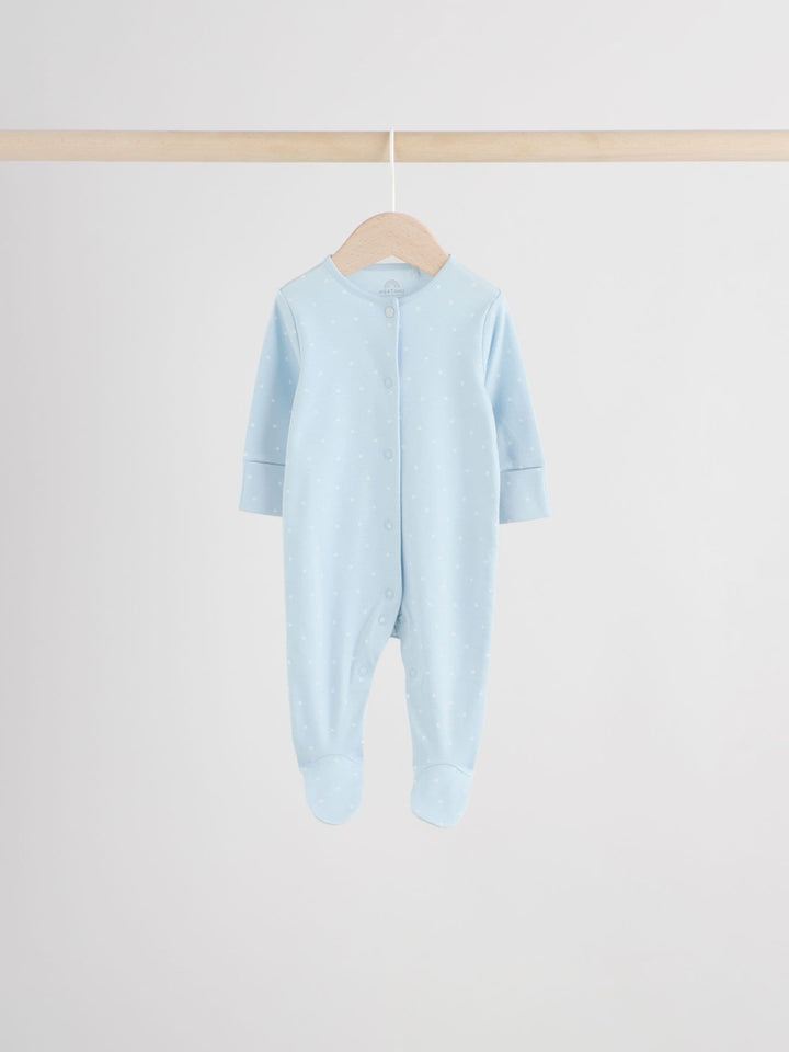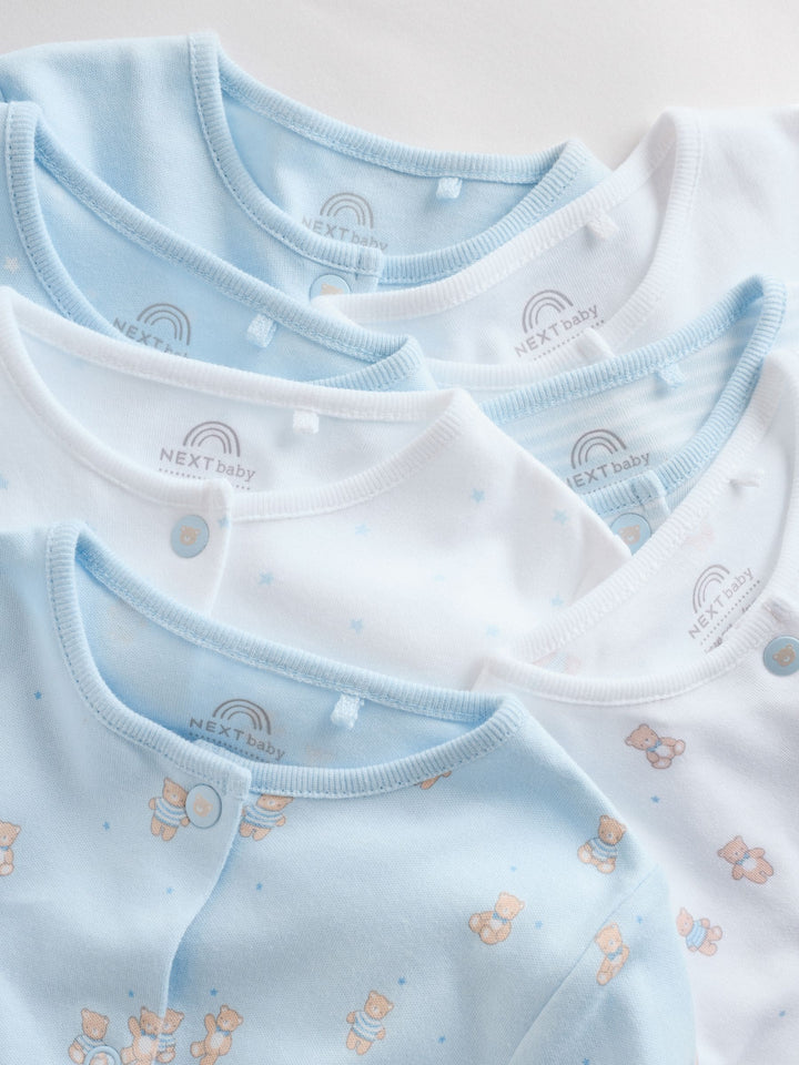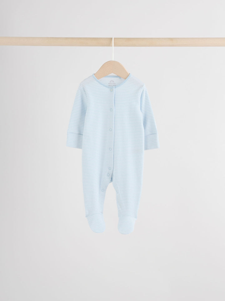 Ensure gentle comfort and fuss-free changes with this essential Blue 7 Pack Baby Bear Sleepsuit set. Each suit is crafted from Super Soft Cotton and features a convenient Popper Front Fastening. Designed for safety, they include Turn Back Scratch Mitts up to 3-6months, Inner Lined Feet with an Anti Slip Sole Print From 9-12 Months, and are guaranteed to contain No Harmful Chemicals or Dyes / Nickel Free Poppers. 7 Pack Sleepsuits Super Soft Cotton Popper Front Fastening Turn Back Scratch Mitts up to 3-6months Inner Lined Feet Anti Slip Sole Print From 9-12 Months No Harmful Chemicals or Dyes / Nickel Free Poppers Machine washable. 7 x Sleepsuit 100% Cotton. Country of Origin: India Warning: Keep away from fire and flames.