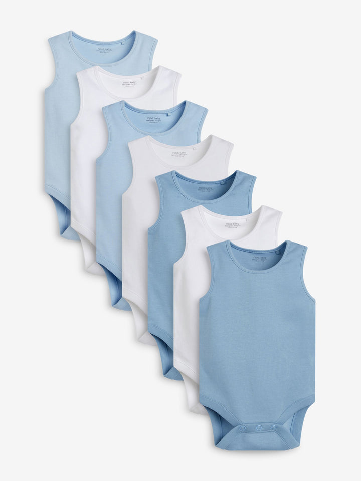 Fill their wardrobe with this multipack of 7 vest bodysuits. Made from pure cotton that is comfortable to wear and stays soft after repeated washing and tumble drying. Designed with printed back-neck labels which are supersoft against your baby's neck. Nickel-free poppers ensure no irritation to delicate skin and no harmful dyes or chemicals have been used, keeping your baby safe. 7 pack bodysuits Supersoft cotton Machine washable. 7 x Bodysuit 100% Cotton. Country of Origin: India Warning: Keep away from fire and flames.