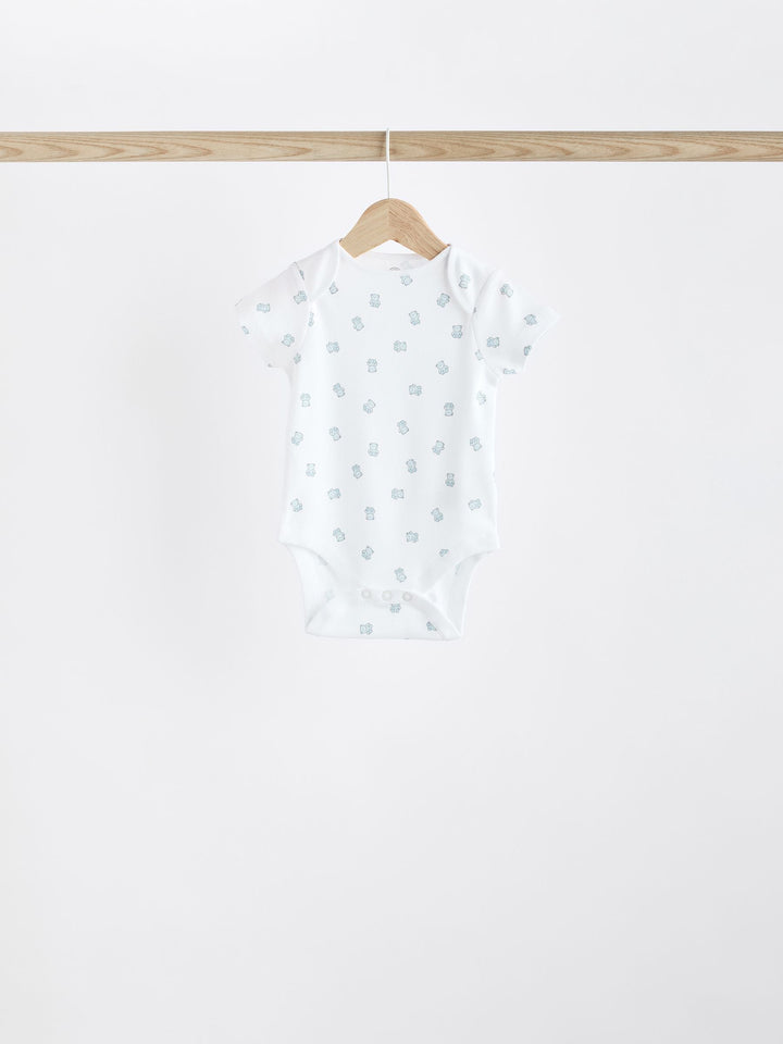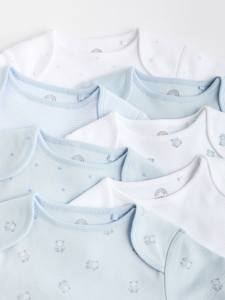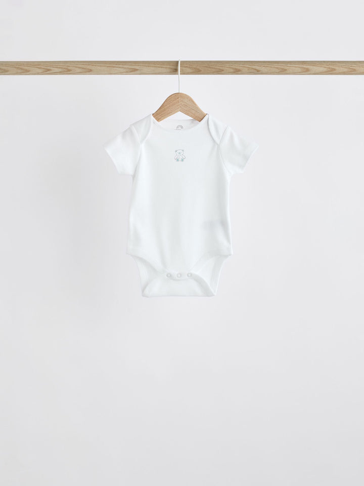 Stock up on the essentials with this cute 7 pack of bear bodysuits. Made from super soft cotton with no harmful chemicals or dyes and nickel free poppers to avoid irritation to delicate skin. Designed with an envelope neck opening and popper fastenings for easy changing. 7 pack Bear designs Super soft cotton Envelope neck opening Nickel free popper fastenings Machine washable. 7 x Bodysuit 100% Cotton. Country of Origin: India Warning: Keep away from fire and flames.