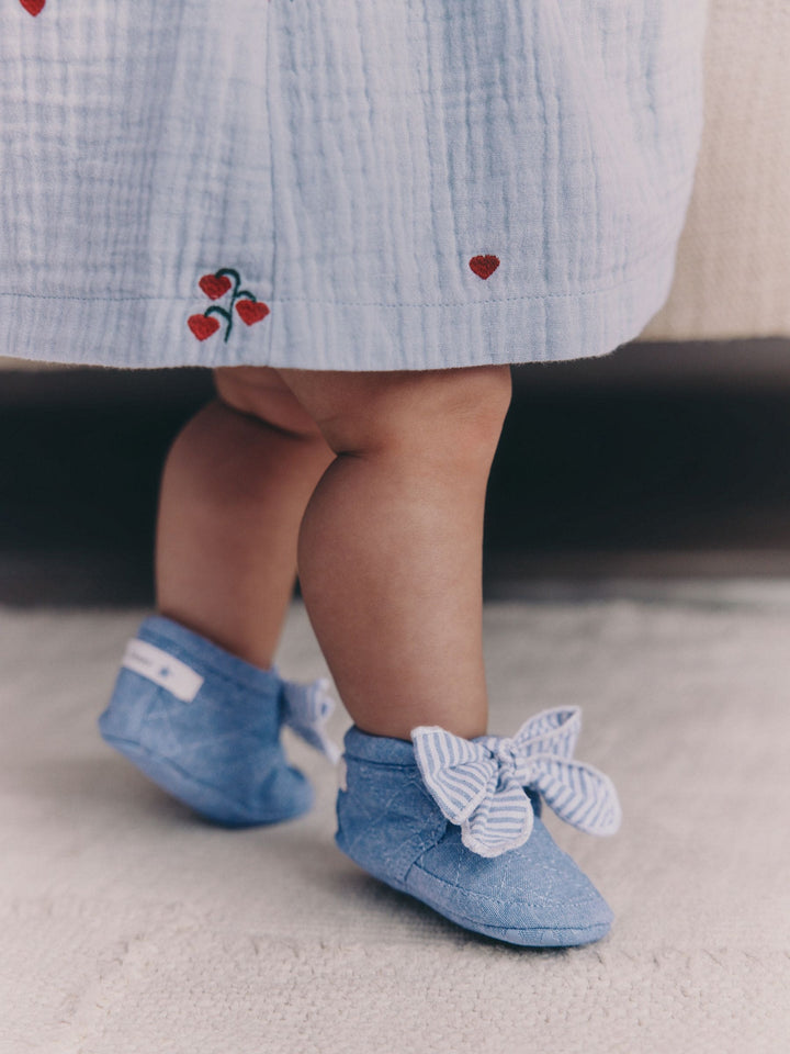 These adorable baby boots have a faux leather upper in a floral print, fabric bow detailing and a woven tab to the back with a 'Happy' slogan. A breathable textile lining keeps their feet comfortable, finished with a soft sole. Faux leather upper Bow detailing Floral print Textile lining Soft sole Upper - Textile, Lining & Sock - Textile, Sole - Textile, Other Materials. Country of Origin: China