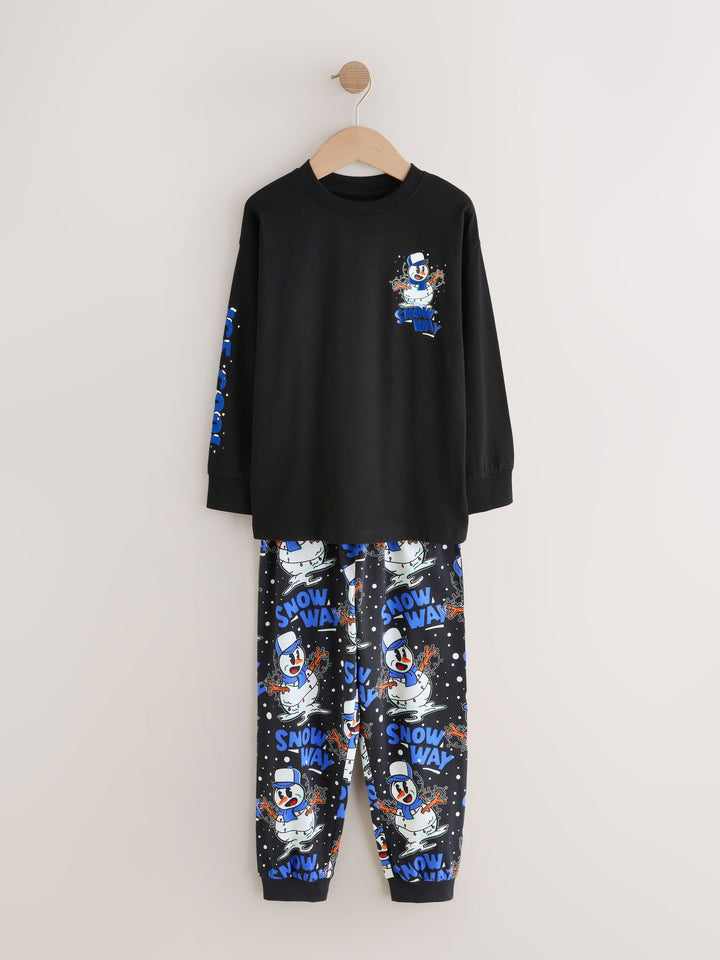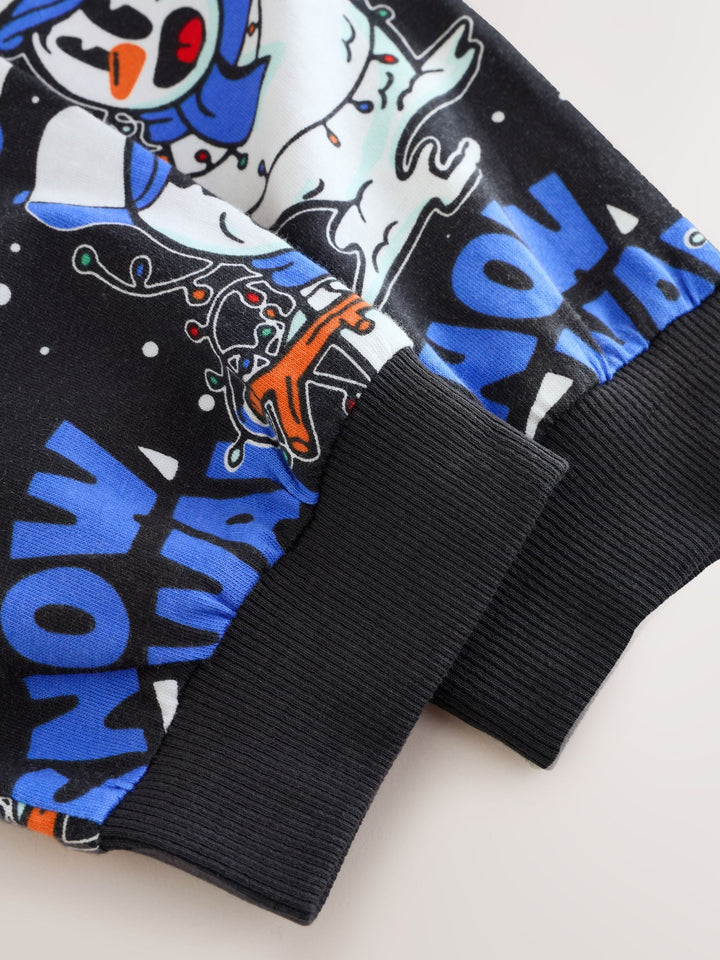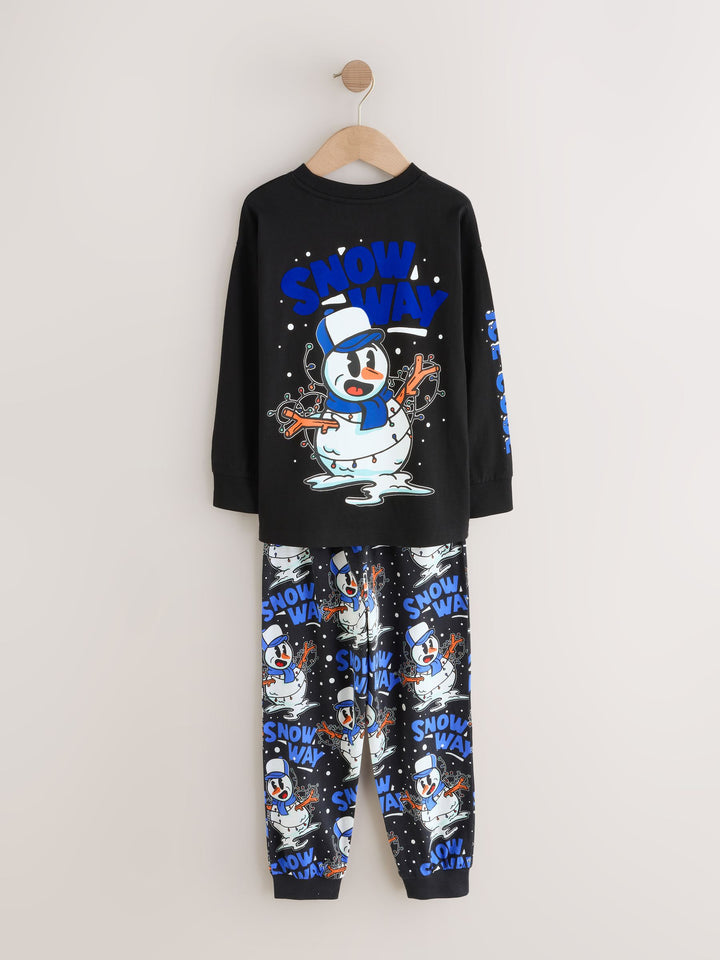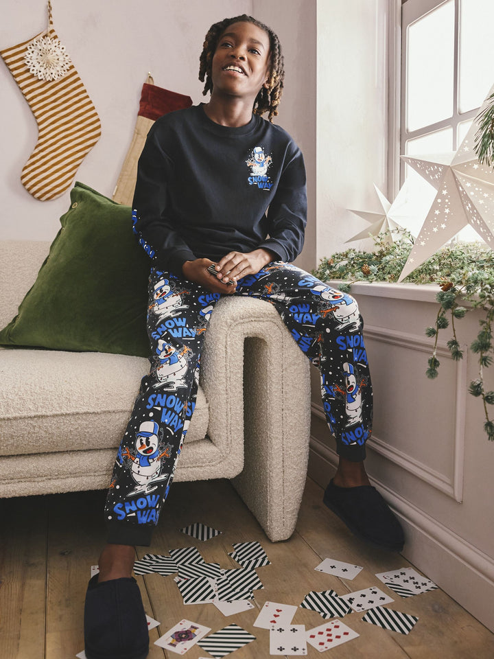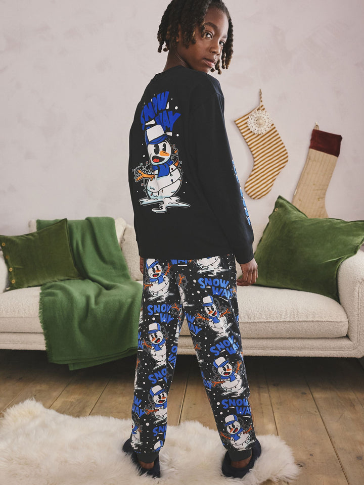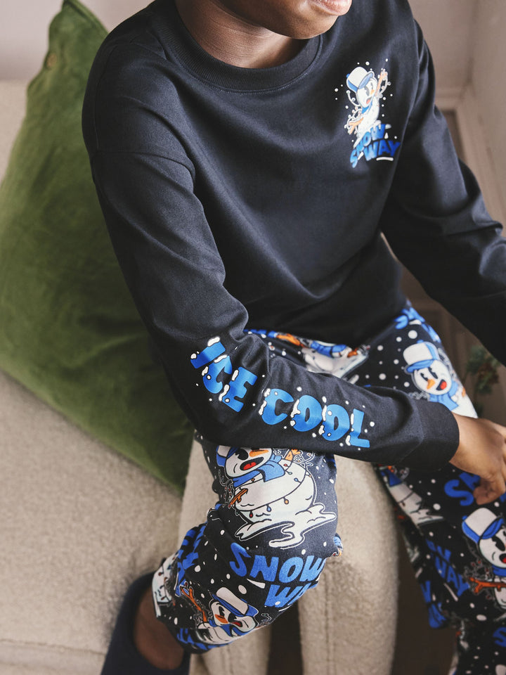 Blue/Black Snowman Single Christmas Pyjamas (5-16yrs)