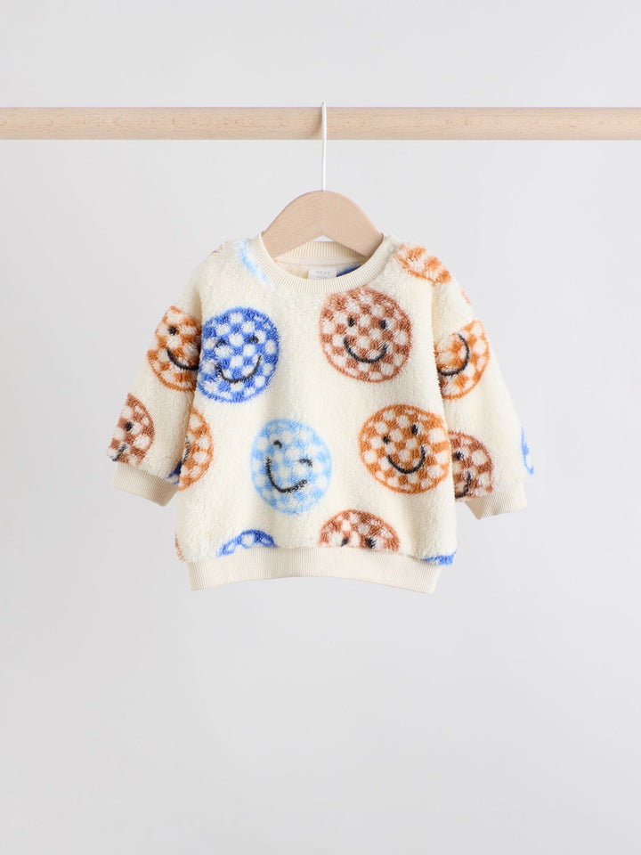 Blue Checkerboard Faces Baby Fleece Top and Joggers Set (0mths-2yrs)